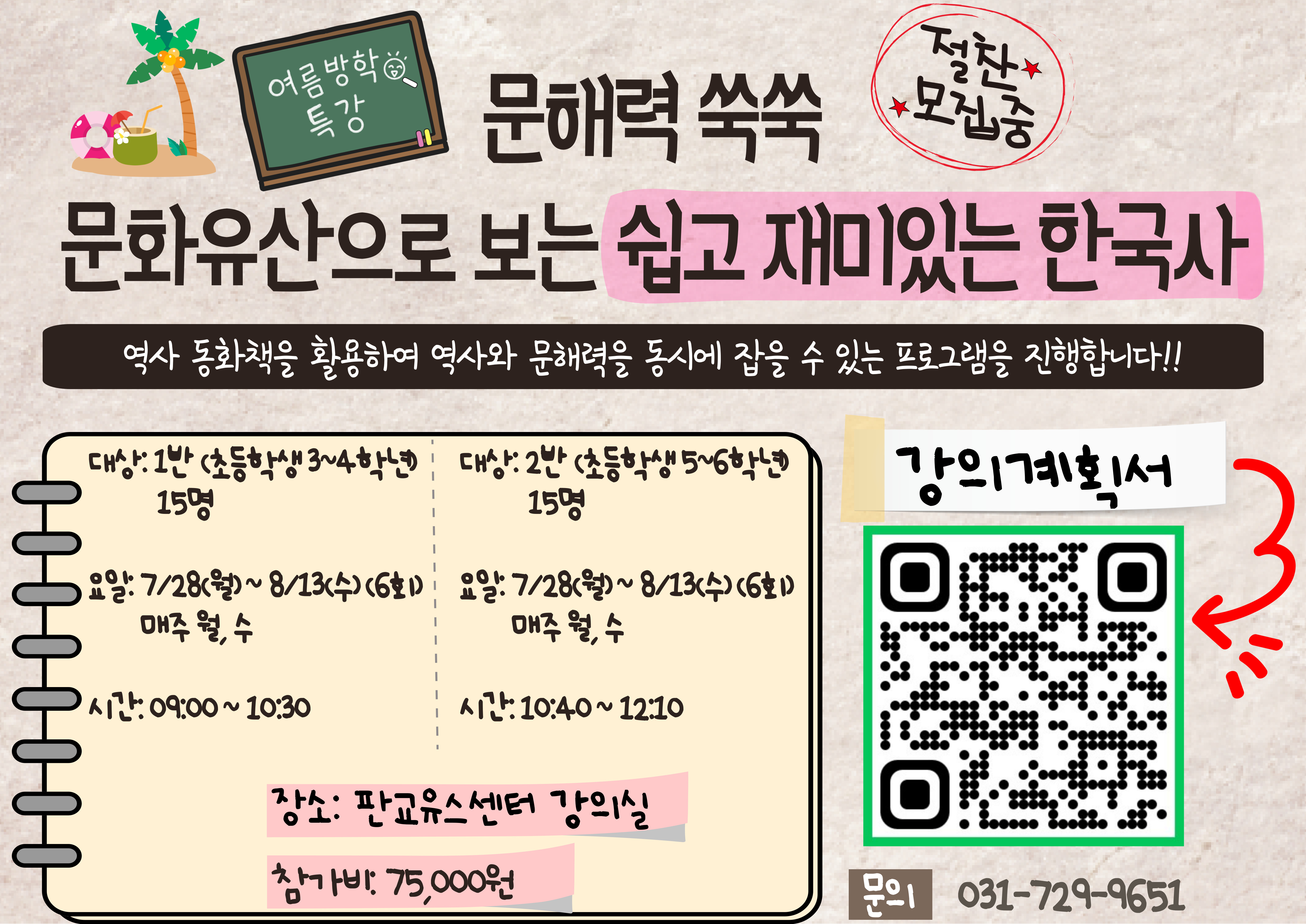 - 문의 : 판교유스센터 교육사업팀 031-729-9651