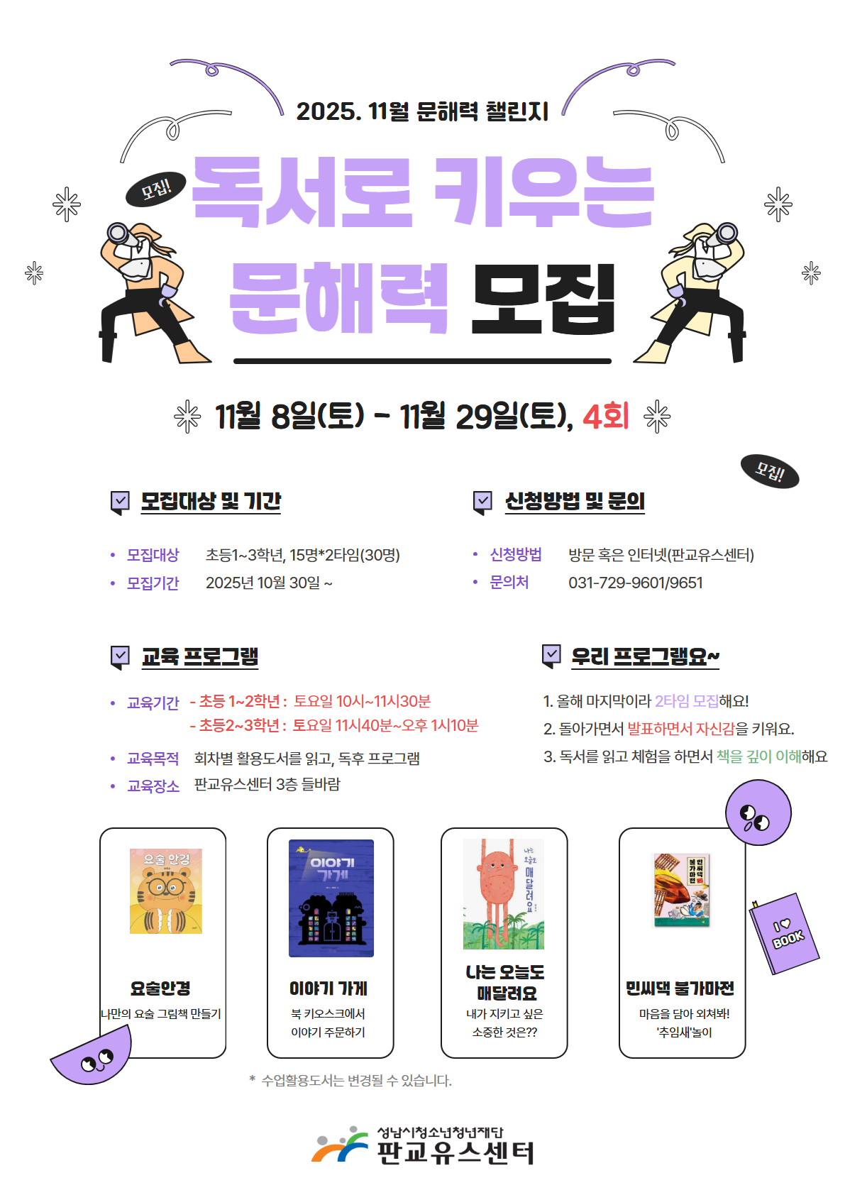 운영기간: 2025.11.8.(토)~11.29.(토), 4회 [10:00~11:30/11:40~13:10]