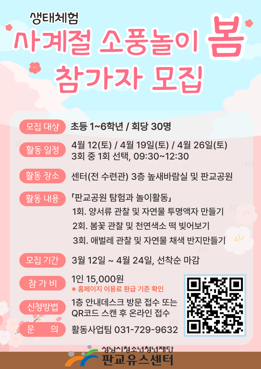 □ 문의사항 : 판교유스센터 활동사업팀 031-729-9632