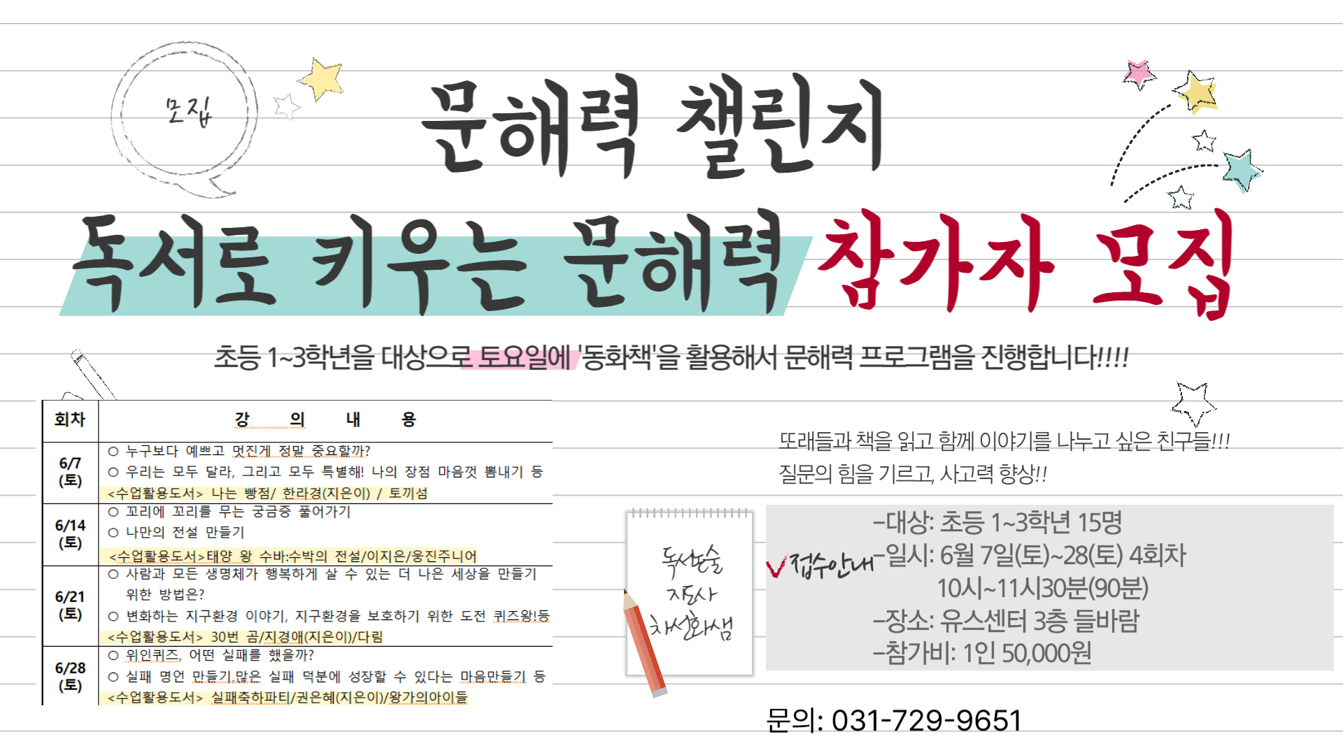 판교유스센터 [문해력 챌린지] 프로그램 참가자 모집