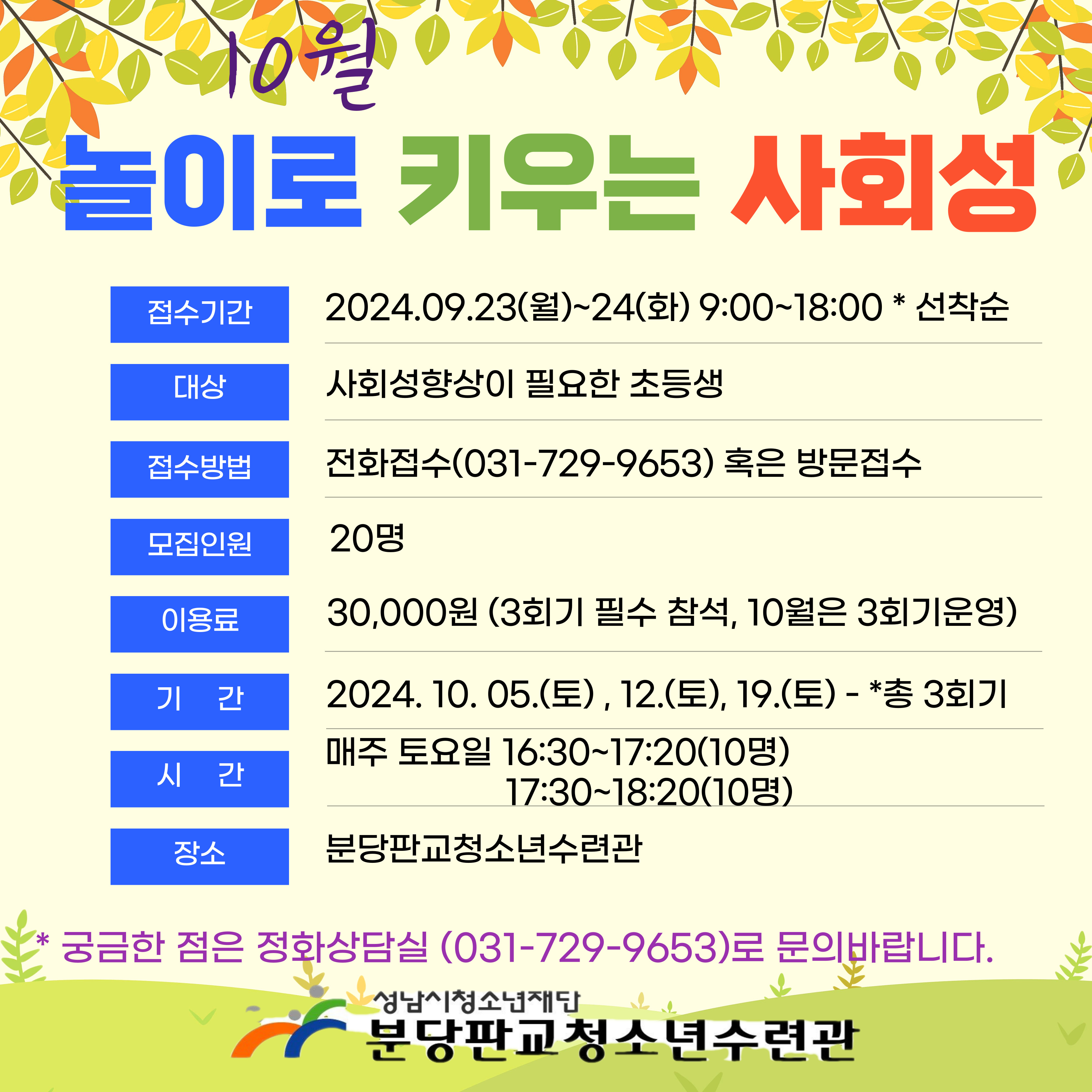 분당판교청소년수련관 10월 [놀이로 키우는 사회성] 프로그램 접수 안내