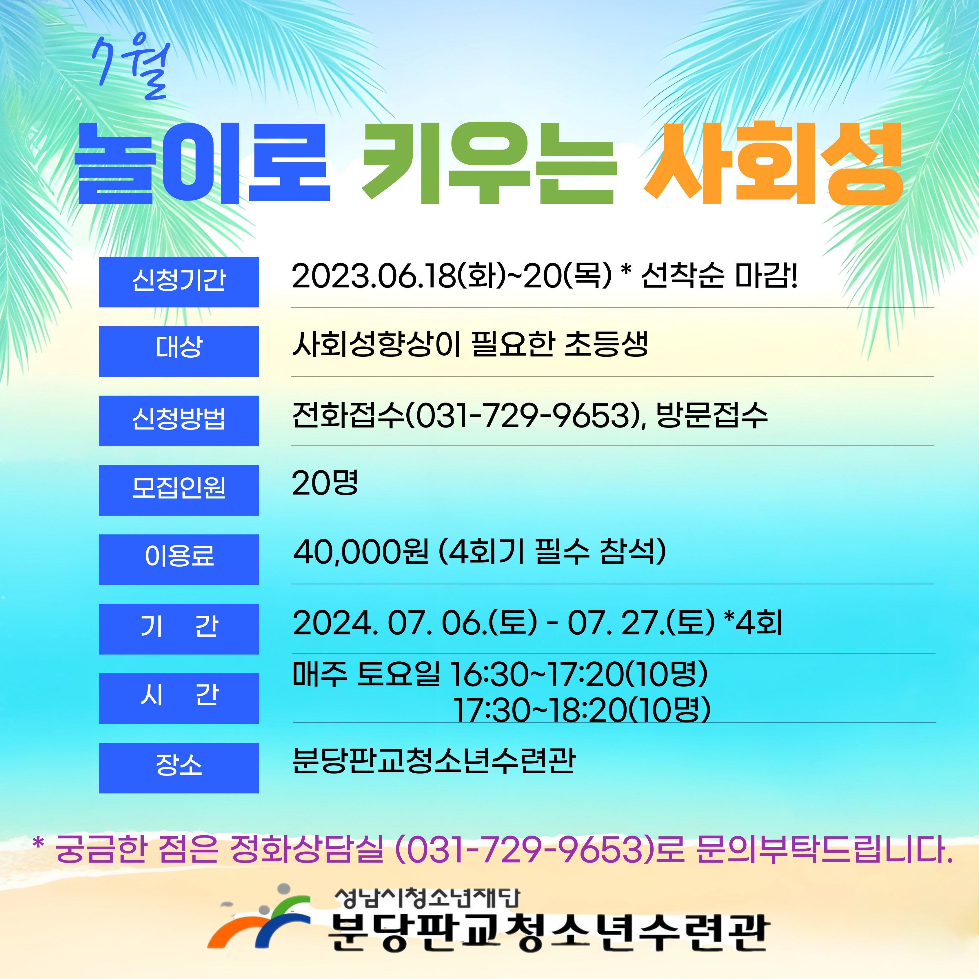 분당판교청소년수련관 7월 [놀이로 키우는 사회성] 프로그램 접수 안내