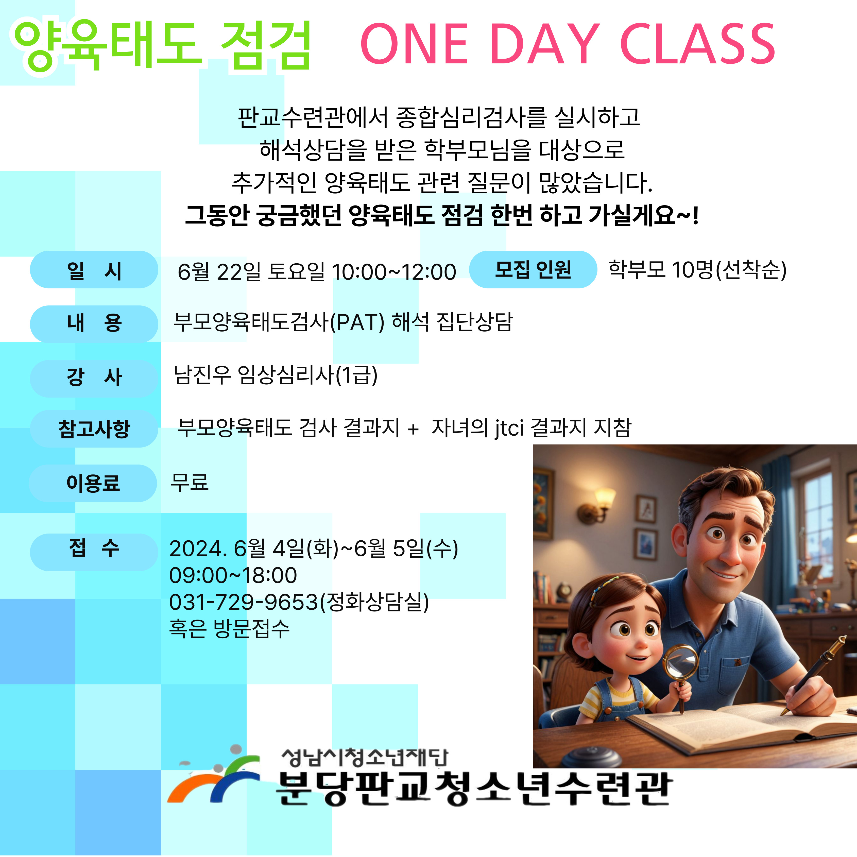 분당판교청소년수련관 [양육태도 점검 ] ONE DAY CLASS 프로그램 접수 안내