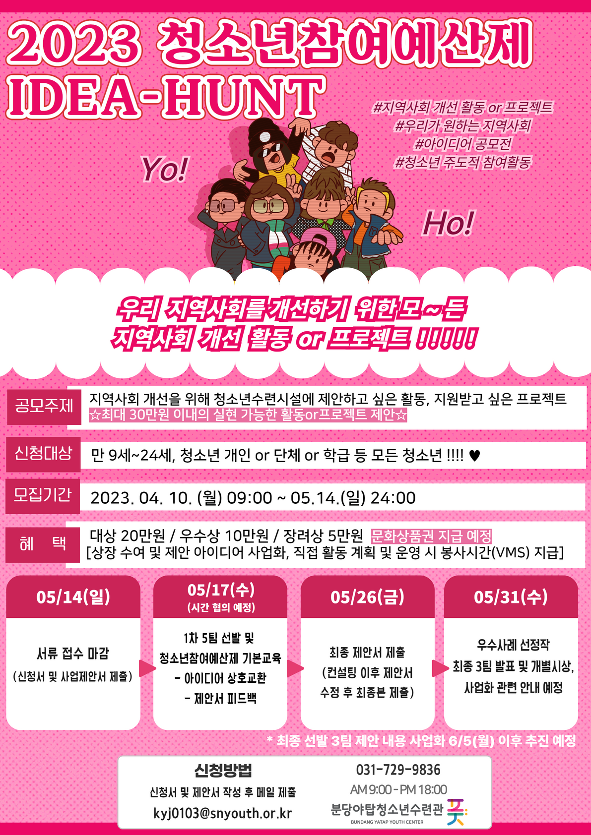 □ 문 의: 분당야탑청소년수련관 활동사업팀 031-729-9836 [09:00~18:00(점심시간 12:00~13:00 제외)]