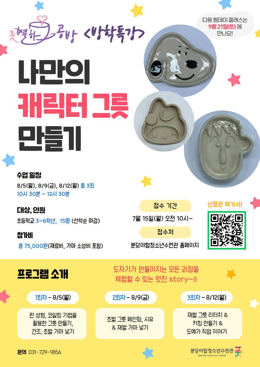 풋별하공방 방학특강 "나만의 캐릭터 그릇만들기" 참가자 모집