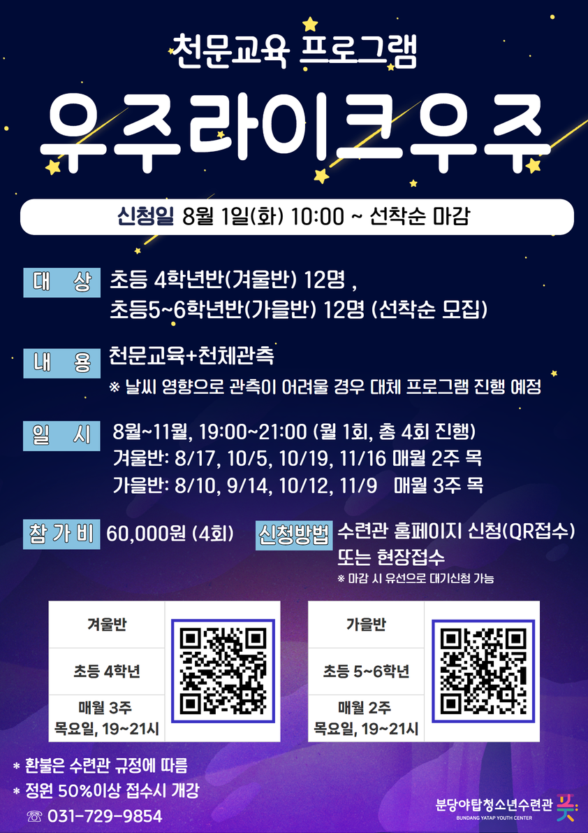 □ 신청방법: 온·오프라인 선착순 접수 (겨울반 https://url.kr/g95cnp / 가을반 https://url.kr/uje7i6 )