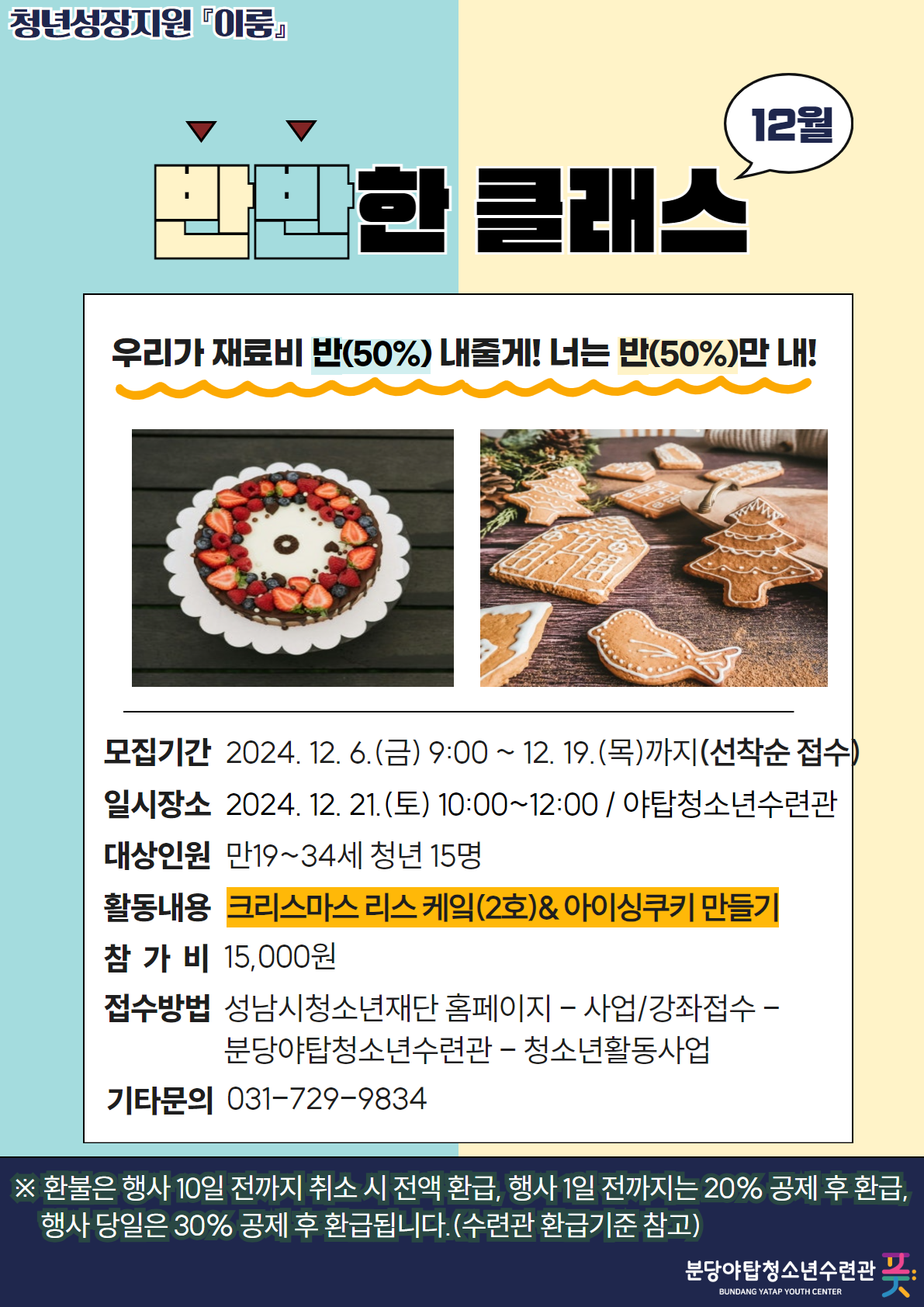 - 일시장소: 2024. 12. 21.(토) 10:00~12:00, 야탑청소년수련관 1층 풋별별 카페