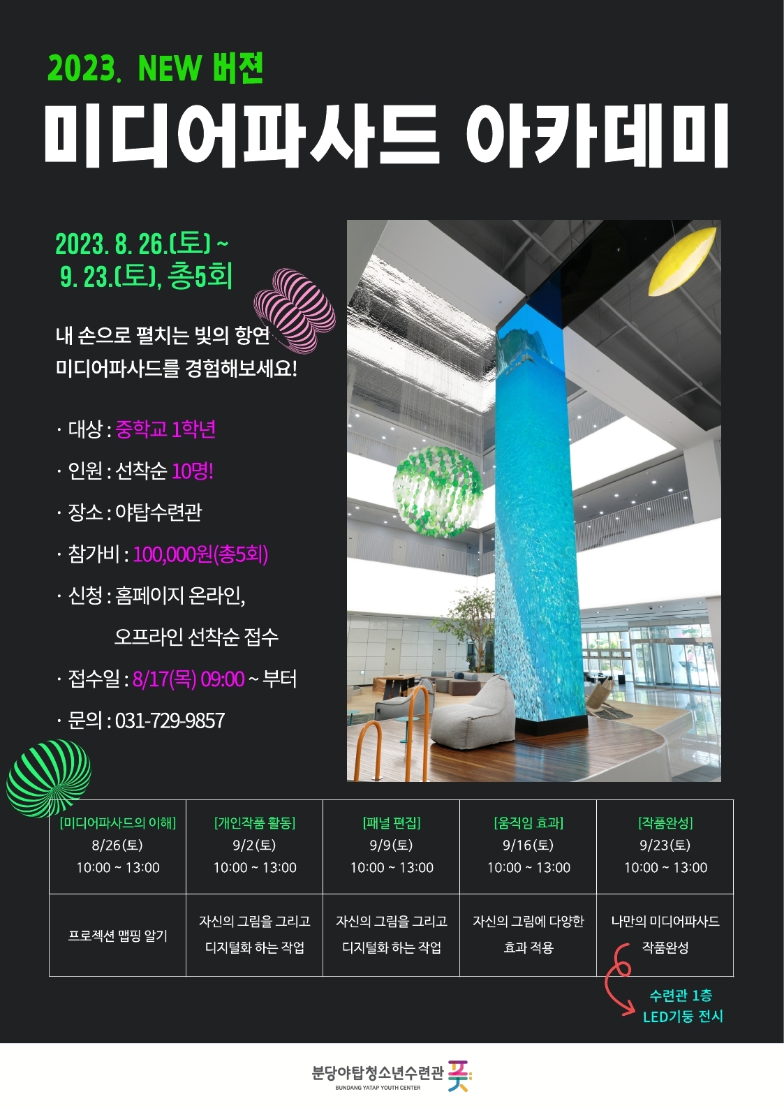 - 기간: 8/26(토) ~ 9/23(토), 10:00 ~ 13:00 매주 토요일, 총 5회!