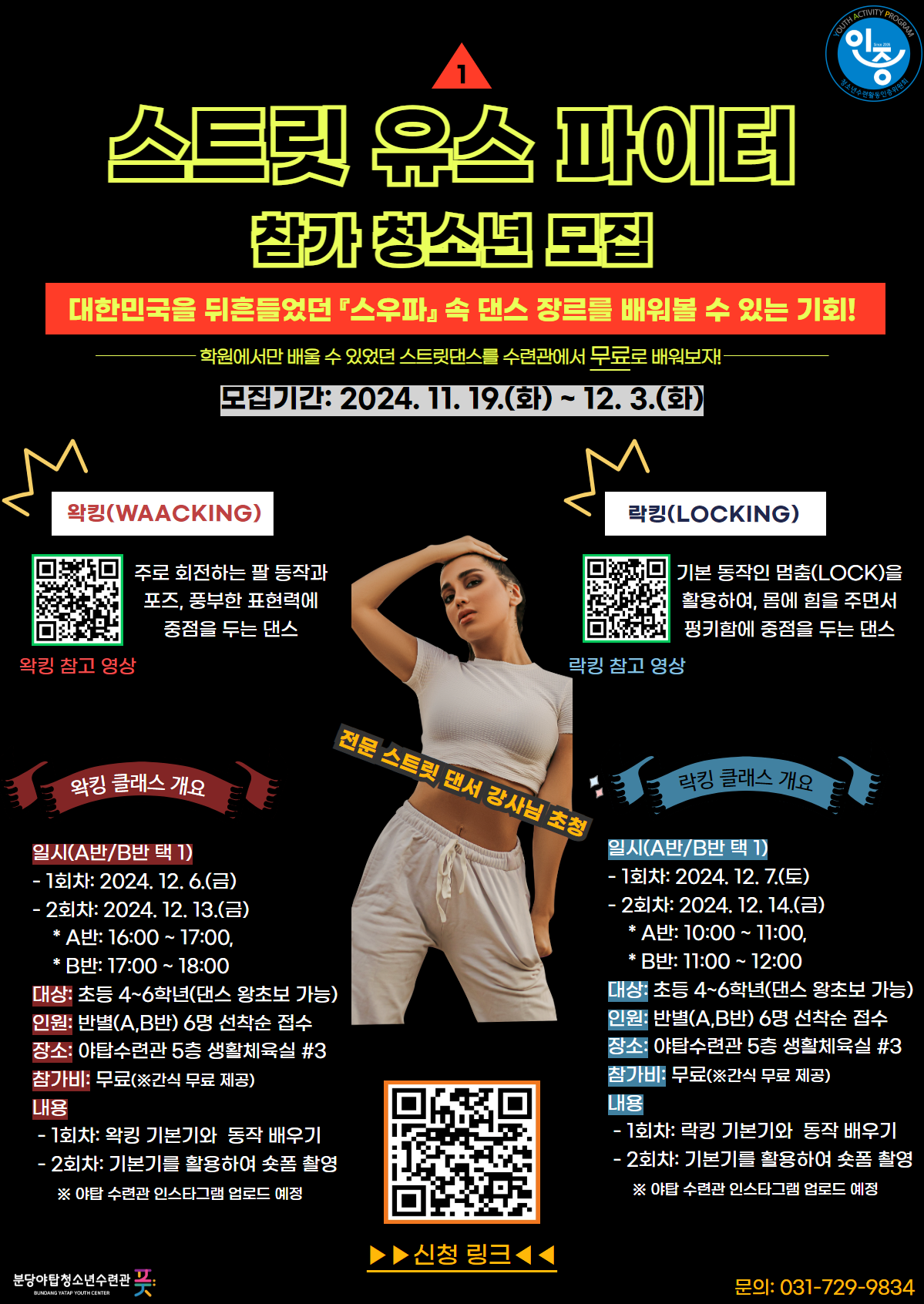 분당야탑청소년수련관에서는 대한민국을 뒤흔들었던 엠넷 방송 『스우파(스트릿우먼파이터)』 속 댄스 장르를
