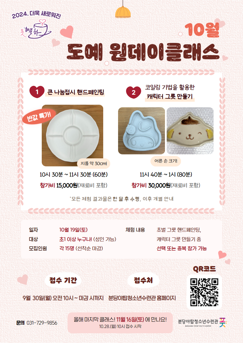 - 프로그램2. 흙공예 11:40~13:00 : 나만의 캐릭터그릇 만들기[참가비 30,000원]
