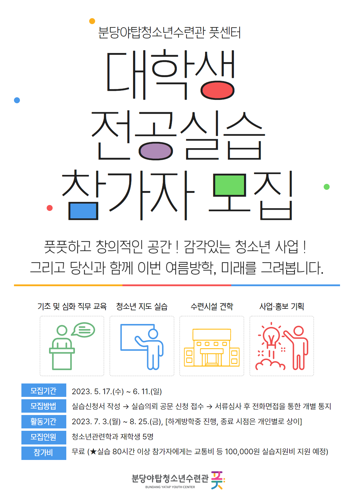 대학생전공실습에 참가할 청소년관련학과 재학생을 모집합니다.