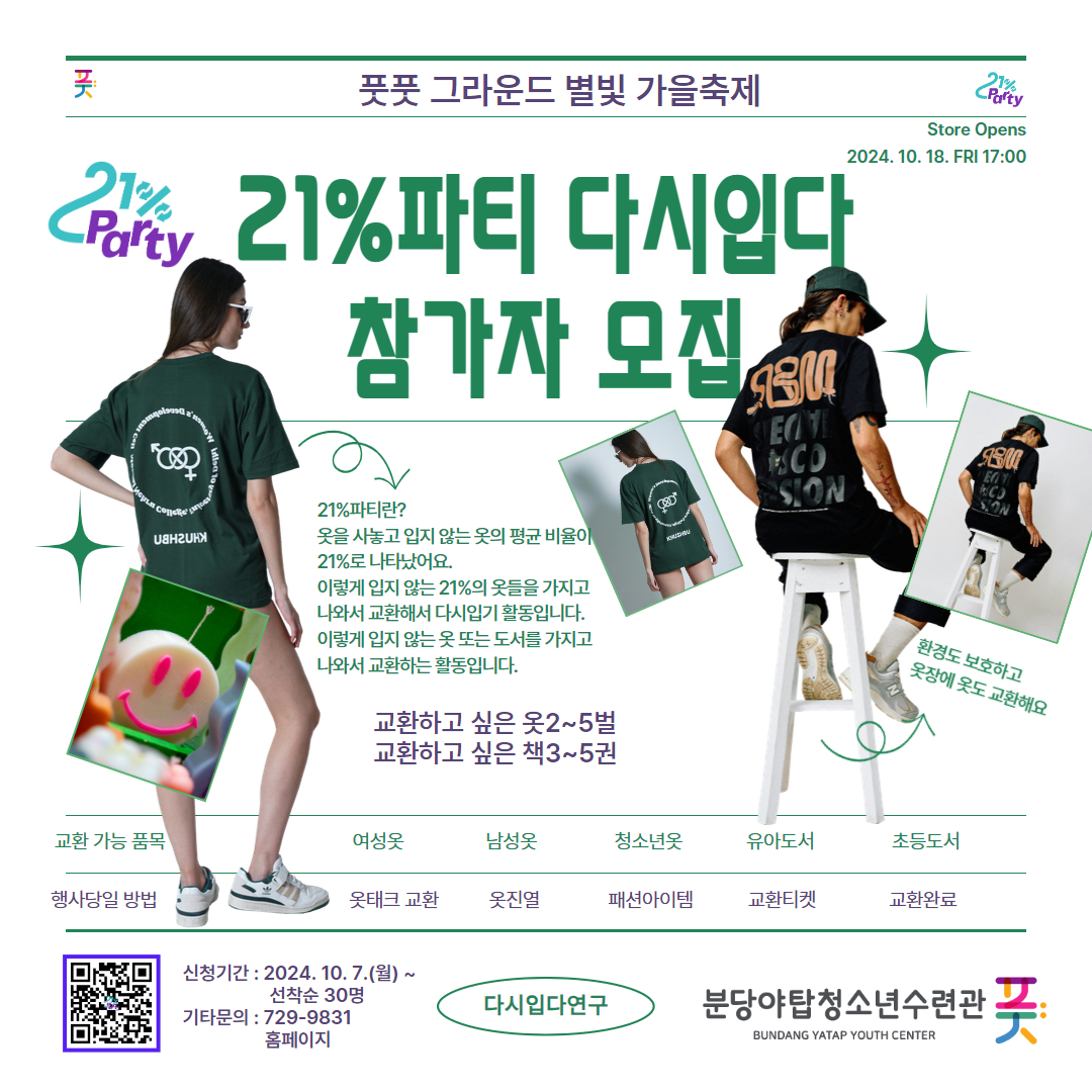 분당야탑청소년수련관에서는 별빛가을 축제 중 21%파티 부스를 진행합니다.