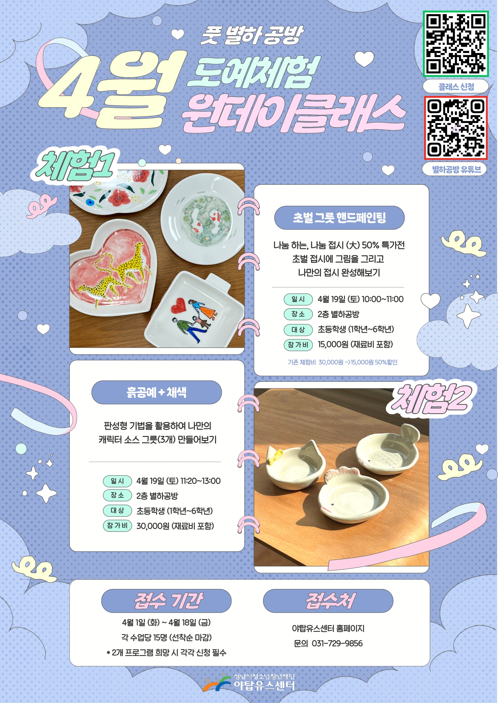별하공방 4월 도예체험 원데이클래스 참가자 모집