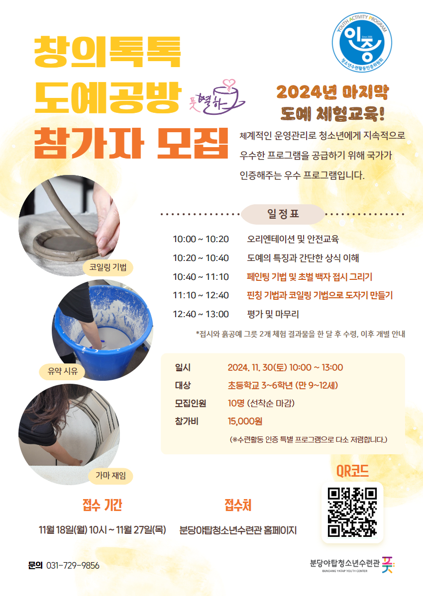 [청소년수련활동인증제] 창의톡톡 도예공방 참가자 모집