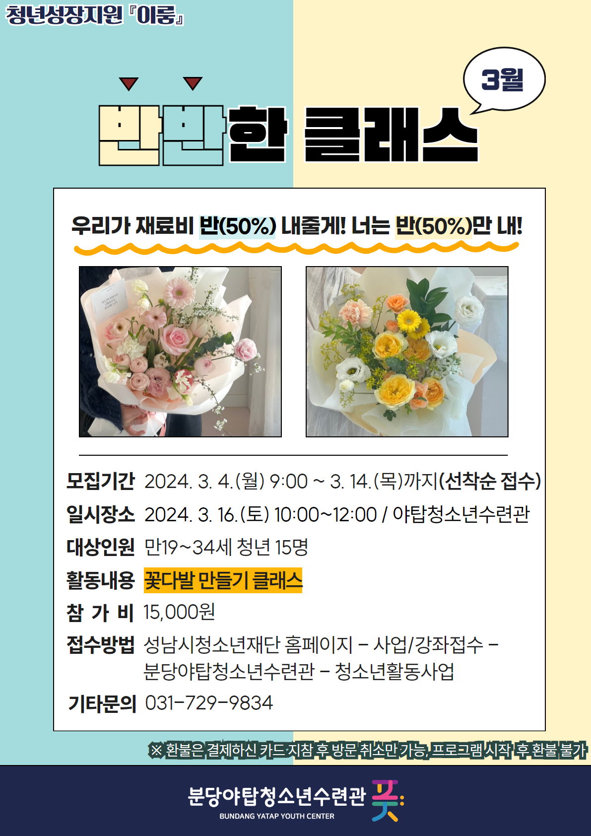 - 일시장소: 2024. 3. 16.(토) 10:00~12:00, 야탑청소년수련관 1층 풋별별 카페
