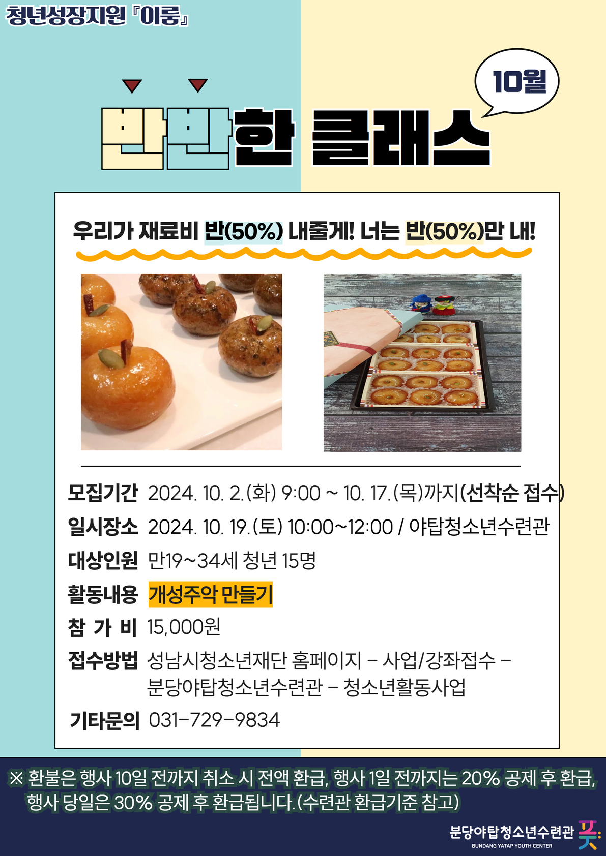 - 일시장소: 2024. 10. 19.(토) 10:00~12:00, 야탑청소년수련관 1층 풋별별 카페