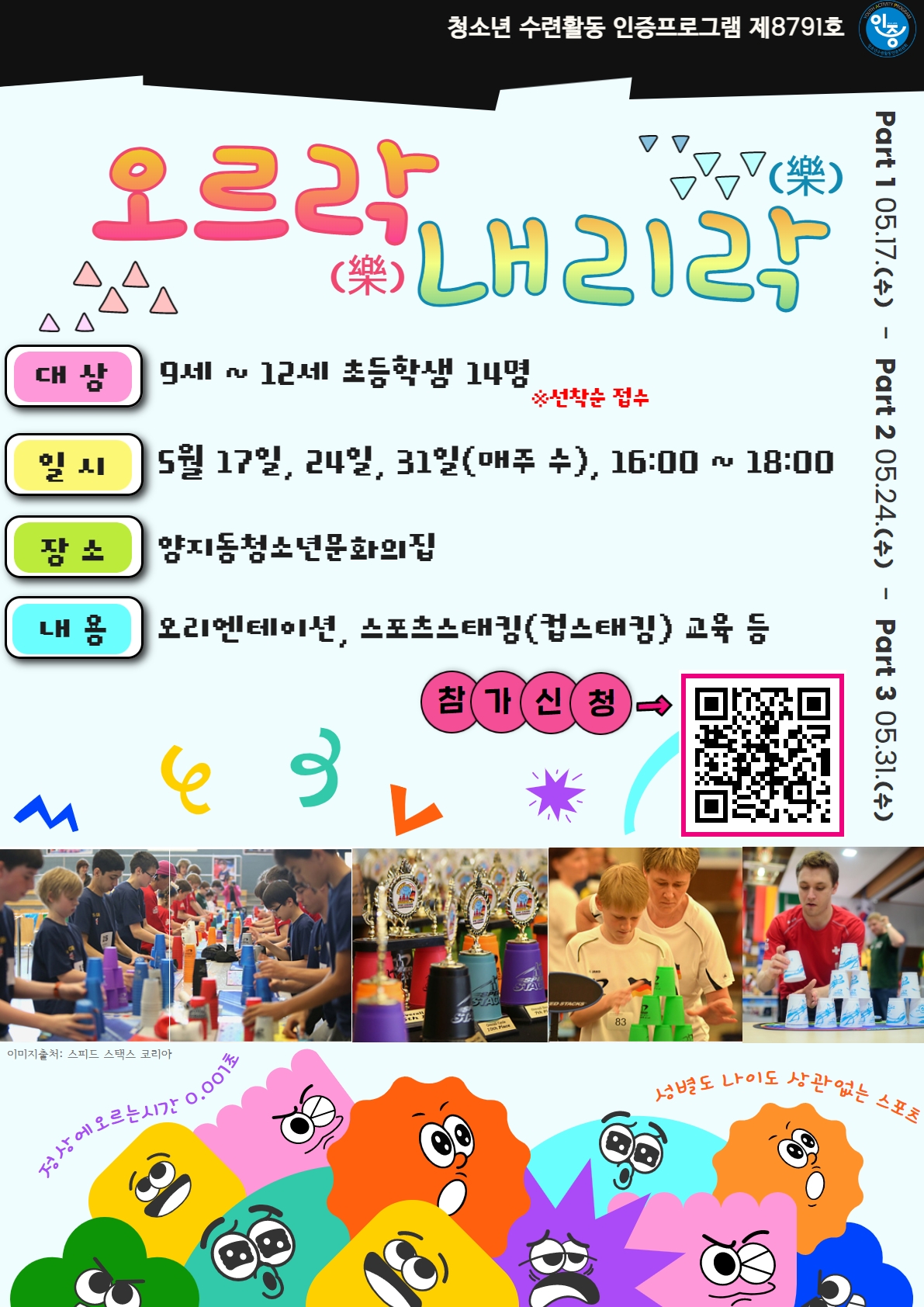 내용: 오리엔테이션,스포츠스태킹(컵스태킹)교육 등