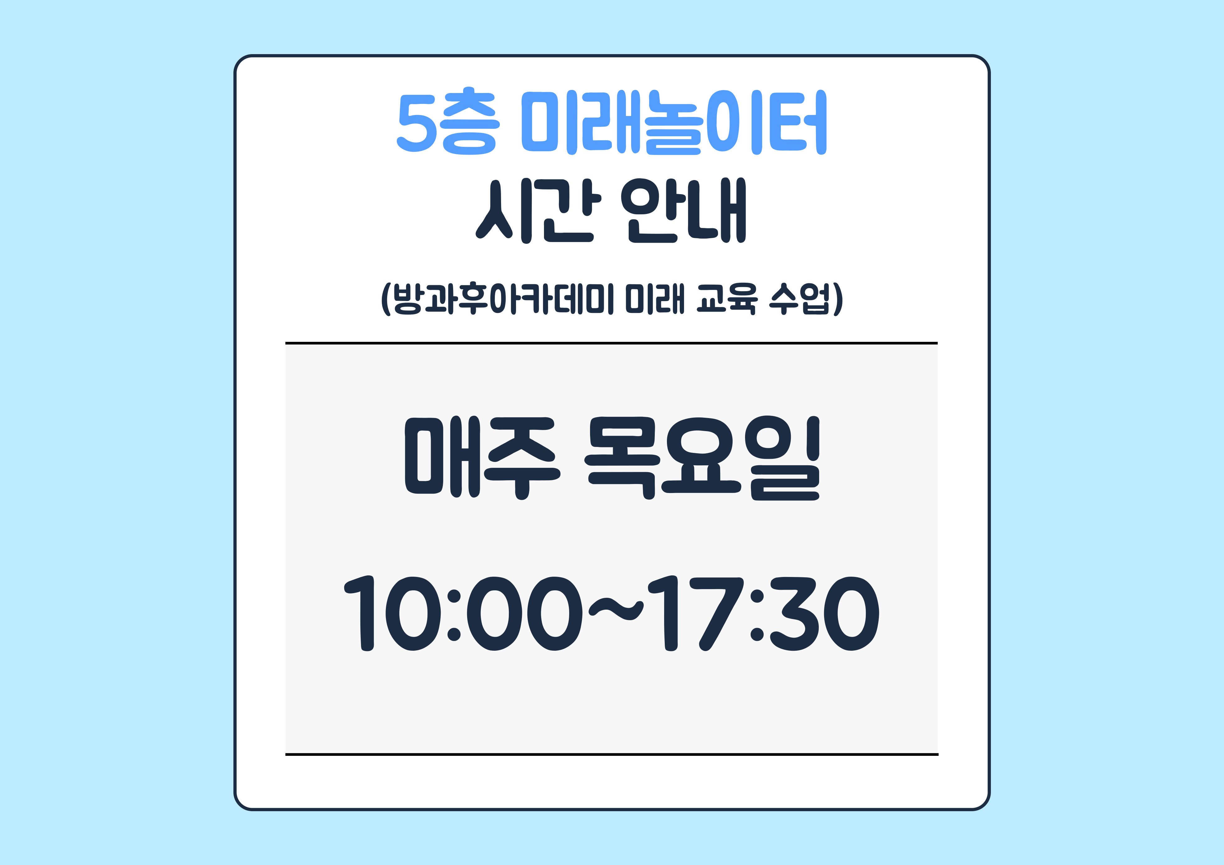 청소년 미래놀이터(5층) 운영시간 안내 입니다:)