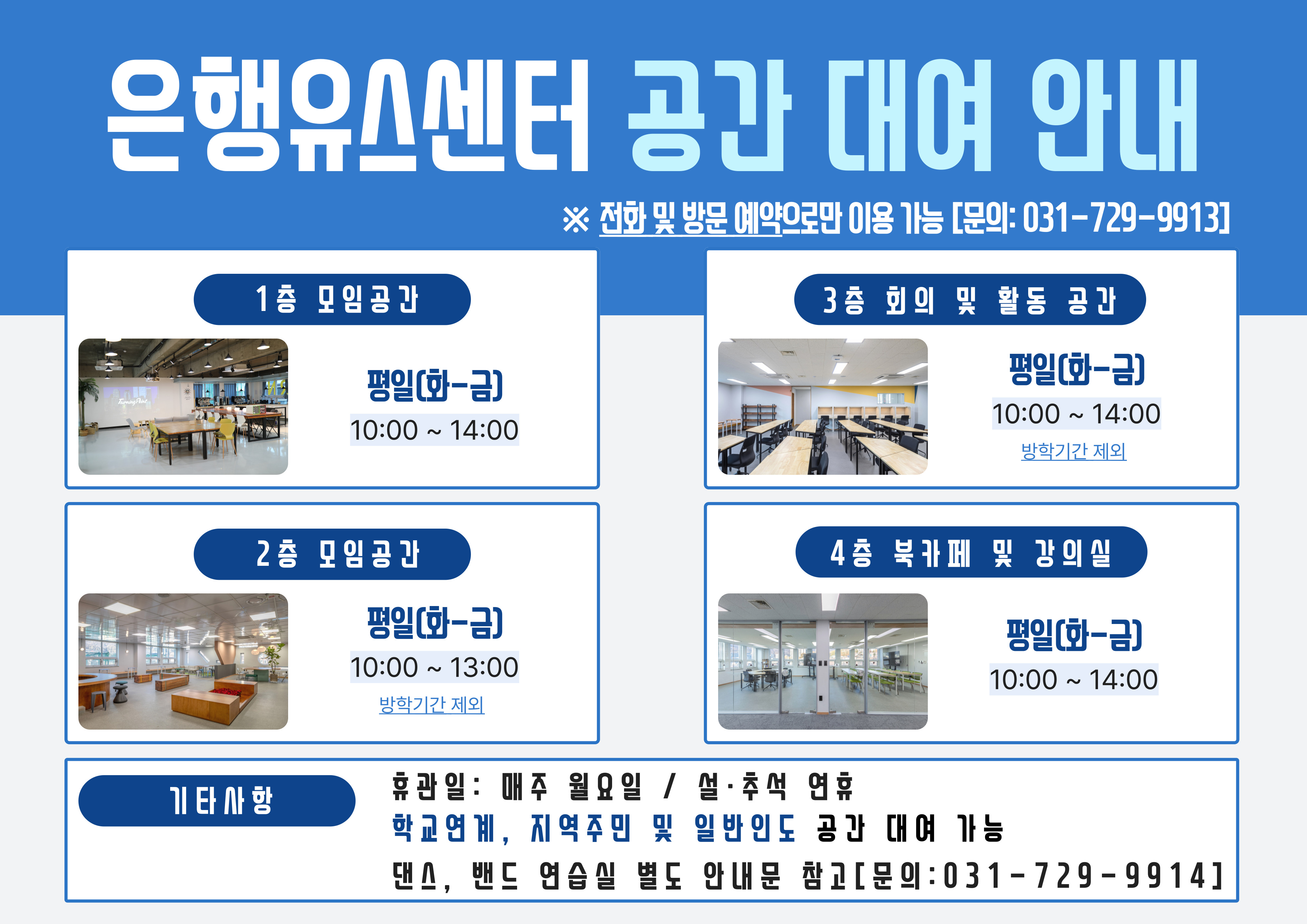 * 댄스, 밴드 연습실은 별도 안내문 참고 해주세요! → [문의: 031-729-9914]