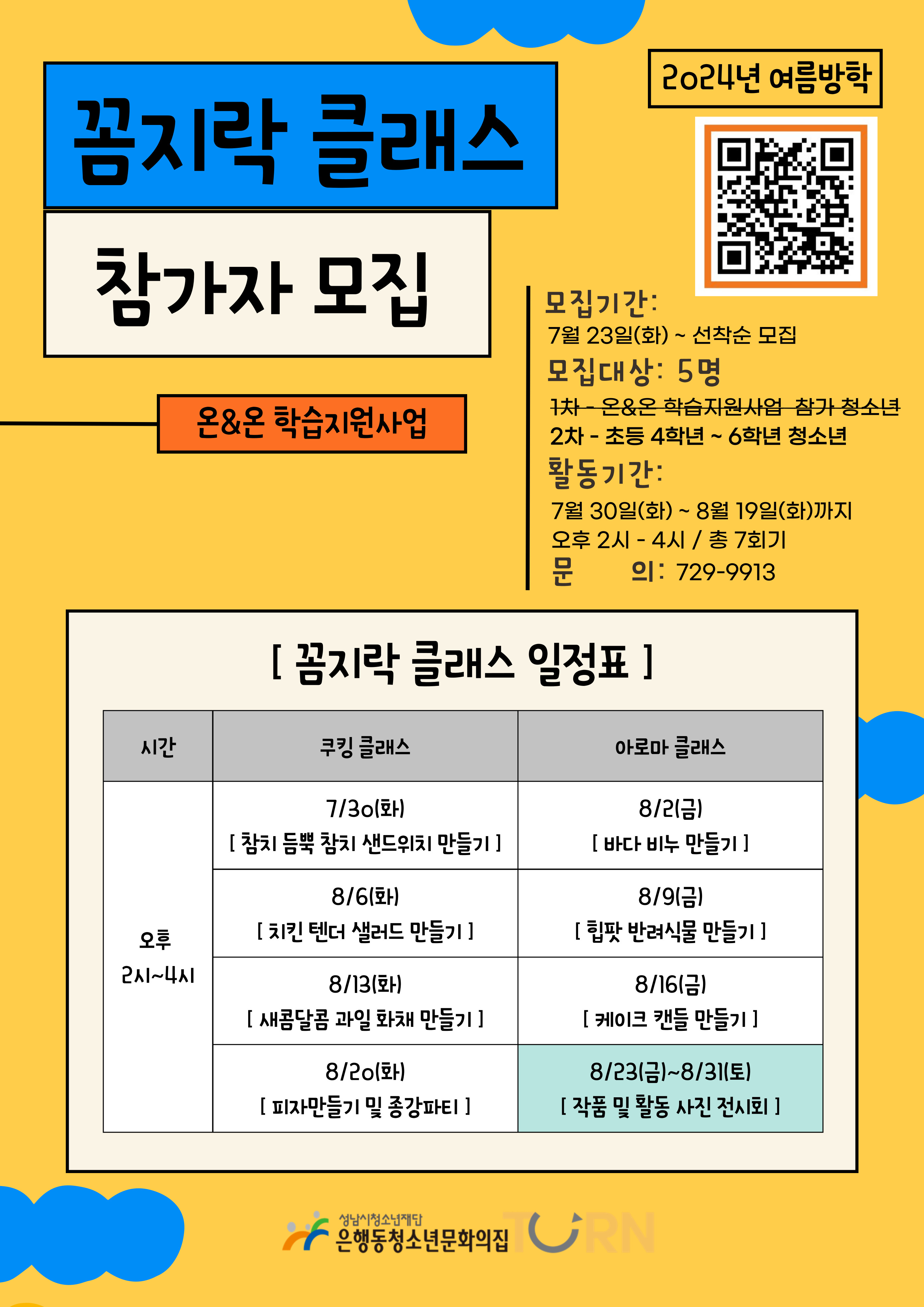 2024. 온&온 학습지원사업 [꼼지락 클래스] 참가자 모집