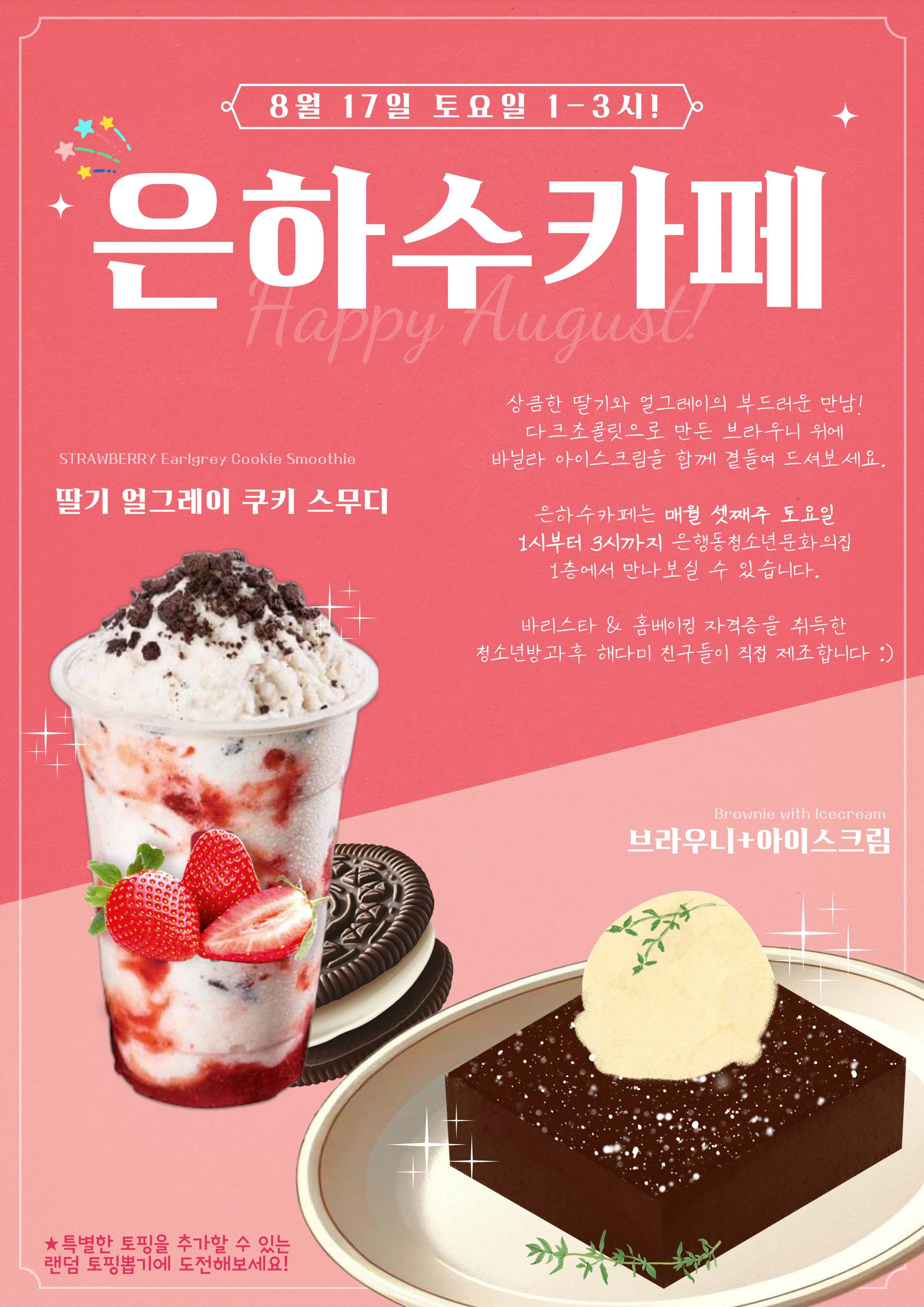 - ★ 이달의 신메뉴★ : 딸기 얼그레이 쿠키 스무디& 아이스크림 곁들인 브라우니