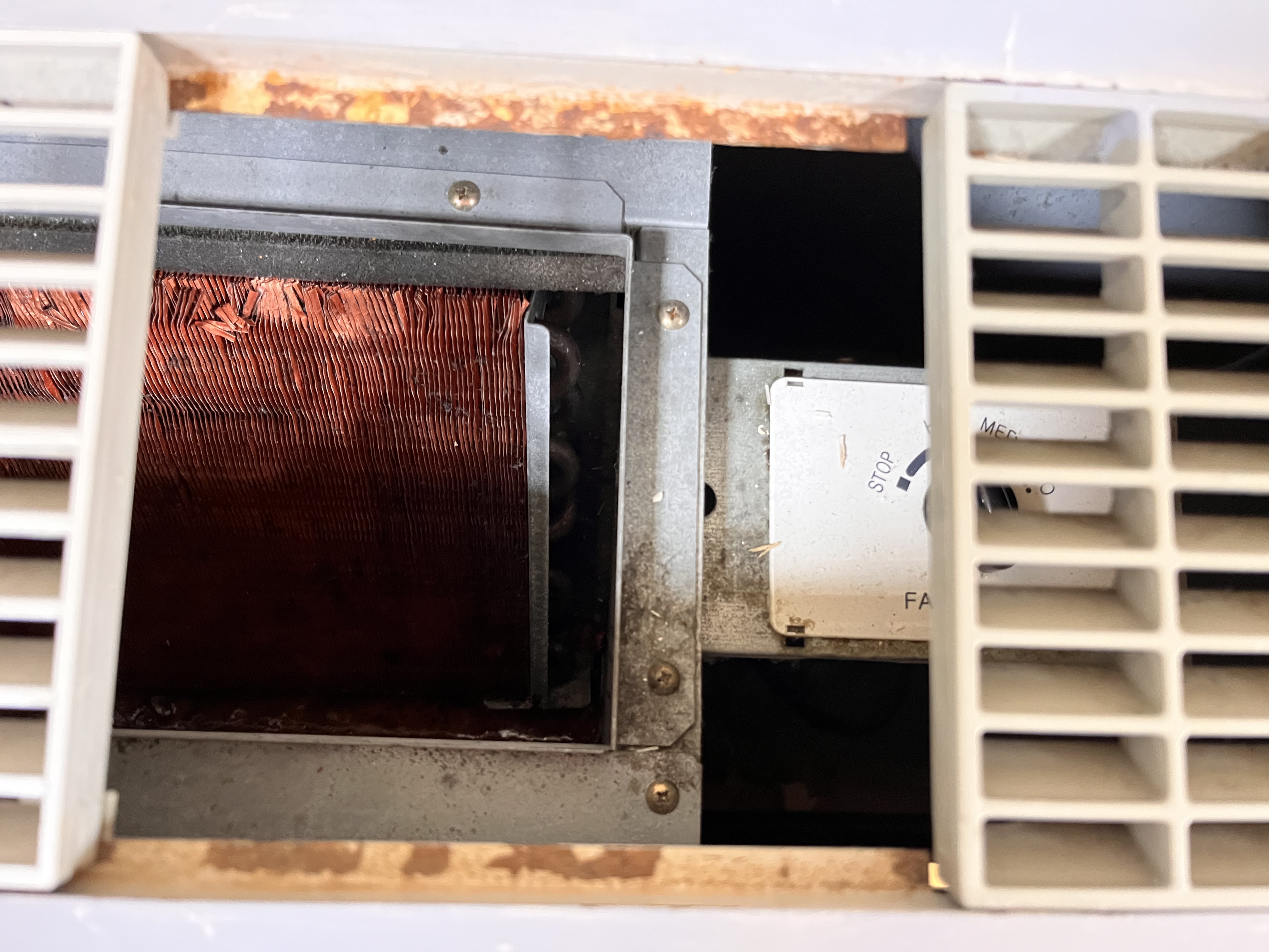 에어컨 시설을 확인해보고 경악을 금치 못했습니다. 과연 청소를 한 것일까 내가 마시는 이 공기가 안전한 것일까 의심이 갈 정도로 매우 더러워 보였습니다. 녹이슬어있고 매우 노후화 되어 있는데 제가 1년을 다니는 동안 개선되는 것이 없는 것 같습니다.