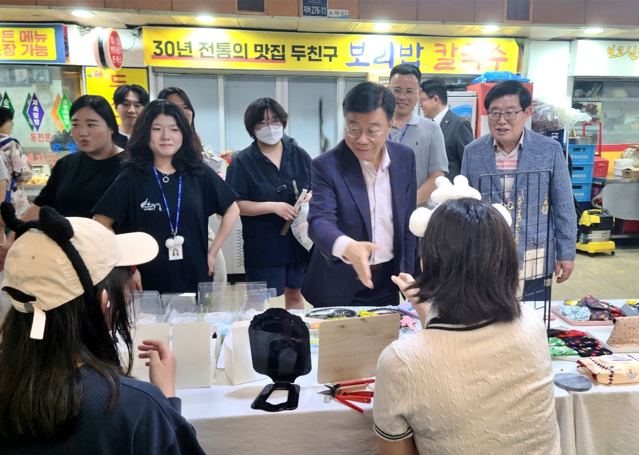 <신상진 성남시장, 양경석 대표이사가 '일하루 일일마켓' 현장을 방문한 모습>