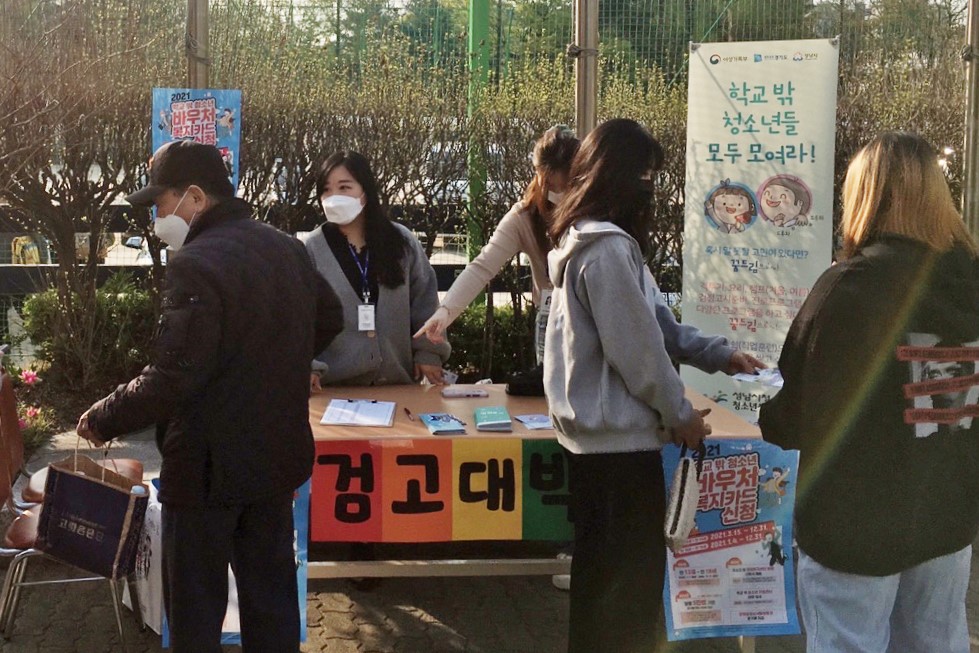 성남시청소년재단(대표이사 진미석) 성남시청소년상담복지센터 꿈드림에서는 지난 4월 10일 2021년 제1회 검정고시에 응시하는 학교 밖 청소년을 대상으로 검정고시 시험장 에서 합격 응원 아웃리치를 실시했다.