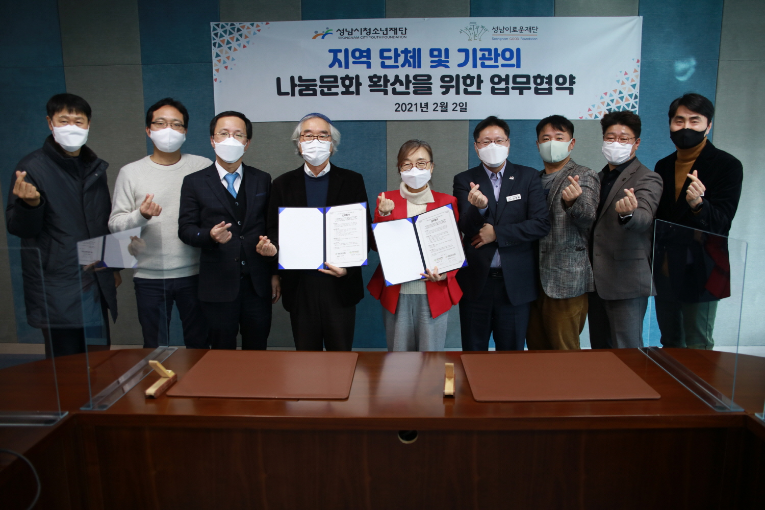 성남시청소년재단(대표이사 진미석)과 이로운재단(이사장 장건)은 지난 2일 성남시청소년재단에서 성남시 청소년과 지역 단체의 나눔 문화 확산을 위한 업무협약을 체결하였다.