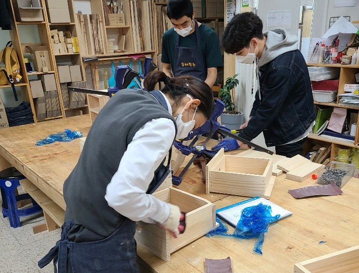 청소년방과후아카데미 목공예 프로그램은 PBL(Project-based learning, 프로젝트 기반 학습) 활동으로써, ‘청소년 1인 1기 자격증 취득’이라는 목표로 목재 재단, 카빙(조각), 제작 총 3가지 과정을 통해 목공 교육사 자격증을 취득하는 민간 자격 과정이다.