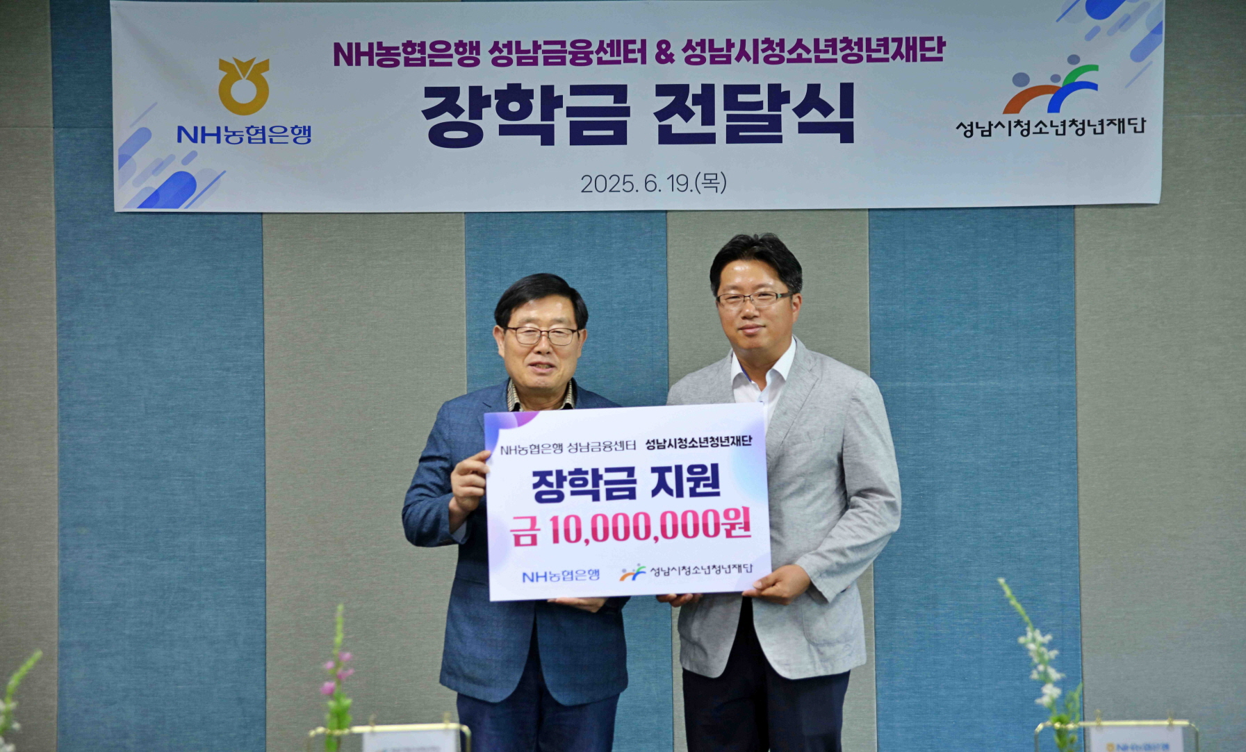 성남시청소년청년재단(대표이사 양경석)은 6월 19일, NH농협은행 성남금융센터(센터장 송종선)의 후원으로 성남시 취약계층 청소년을 위한 장학금 전달식을 개최했다고 밝혔다.