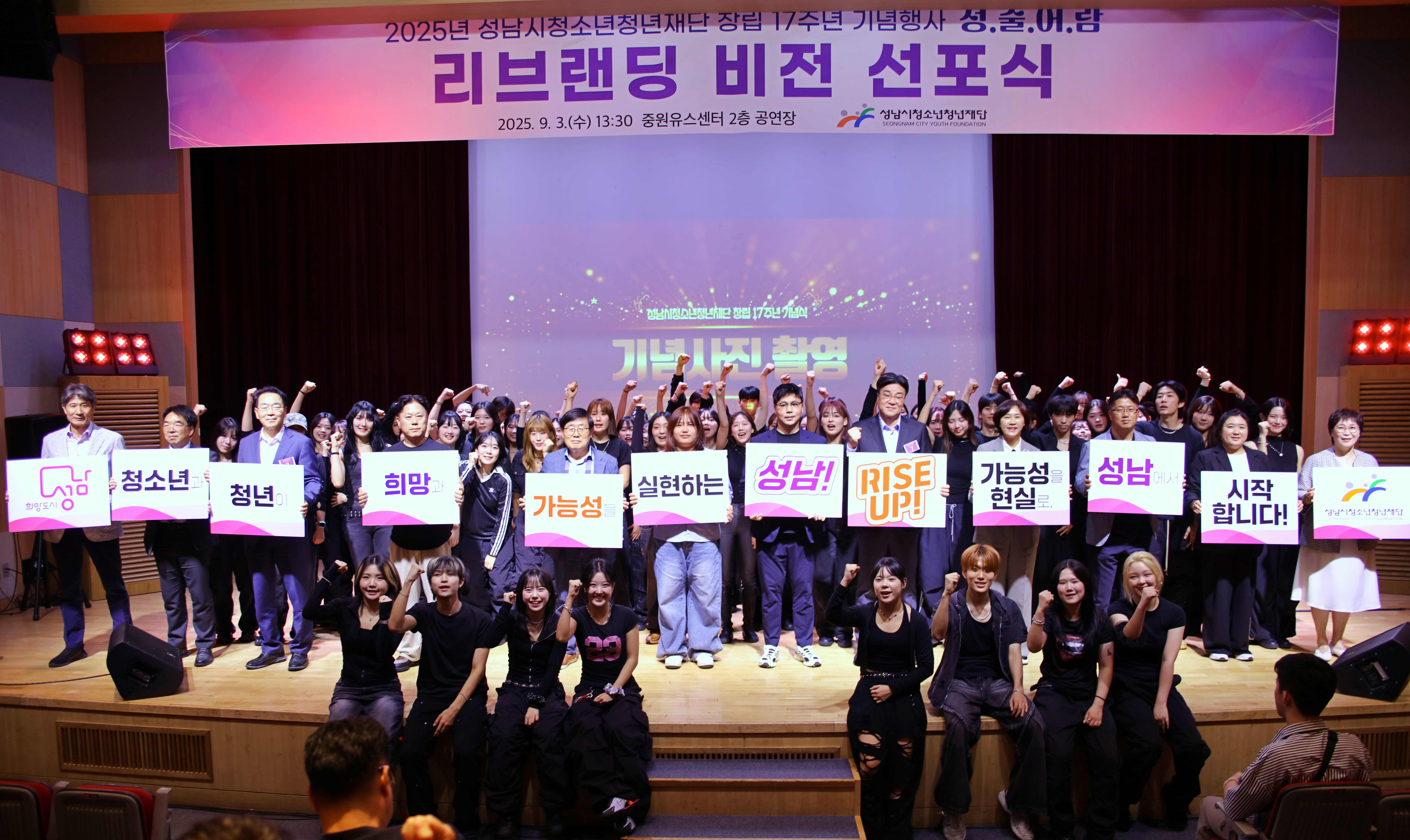 1부『리브랜딩 비전선포식』에서는 재단의 비전“청소년과 청년이 희망과 가능성을 실현하는 성남”과 새로운 도약과 혁신 의지를 담은 슬로건“RISE UP! 가능성을 현실로, 성남에서 시작합니다.”를 공식 선포했다.