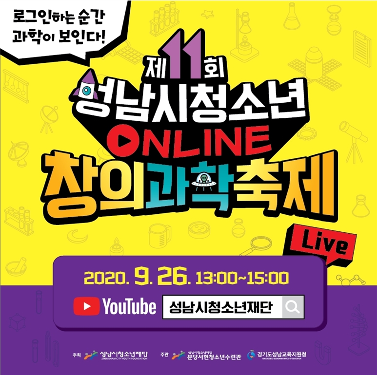 성남시청소년재단(대표이사 진미석) 분당서현청소년수련관과 경기도성남교육지원청이 공동 주관하는 ‘제11회 온라인 성남시청소년창의과학축제’가 오는 9월 26일(토) 오후 1시부터 3시까지 개최된다.