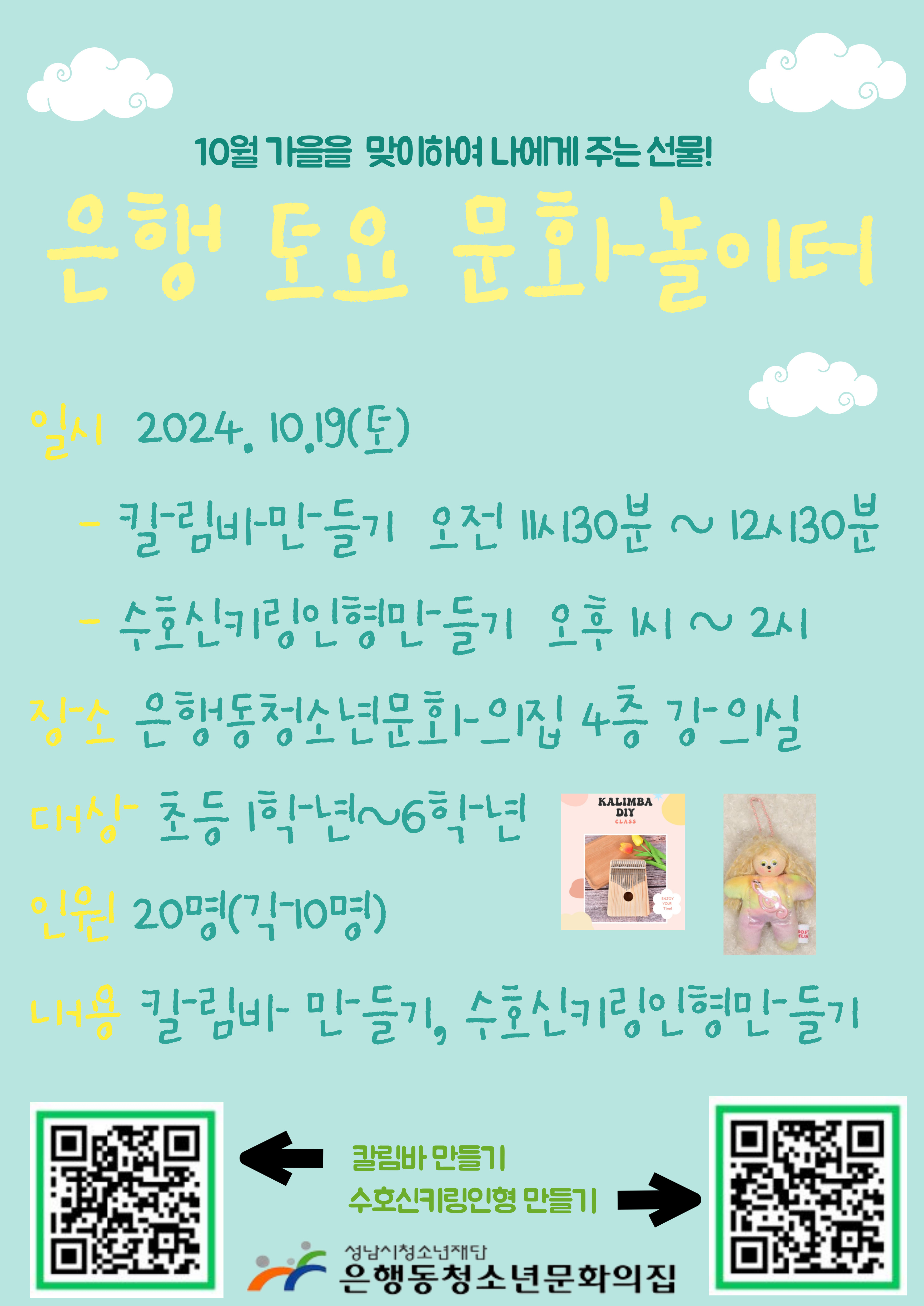 - 내용: 아름다운 소리가 나는 칼림바 & 나만의 수호신 키링 인형 만들기