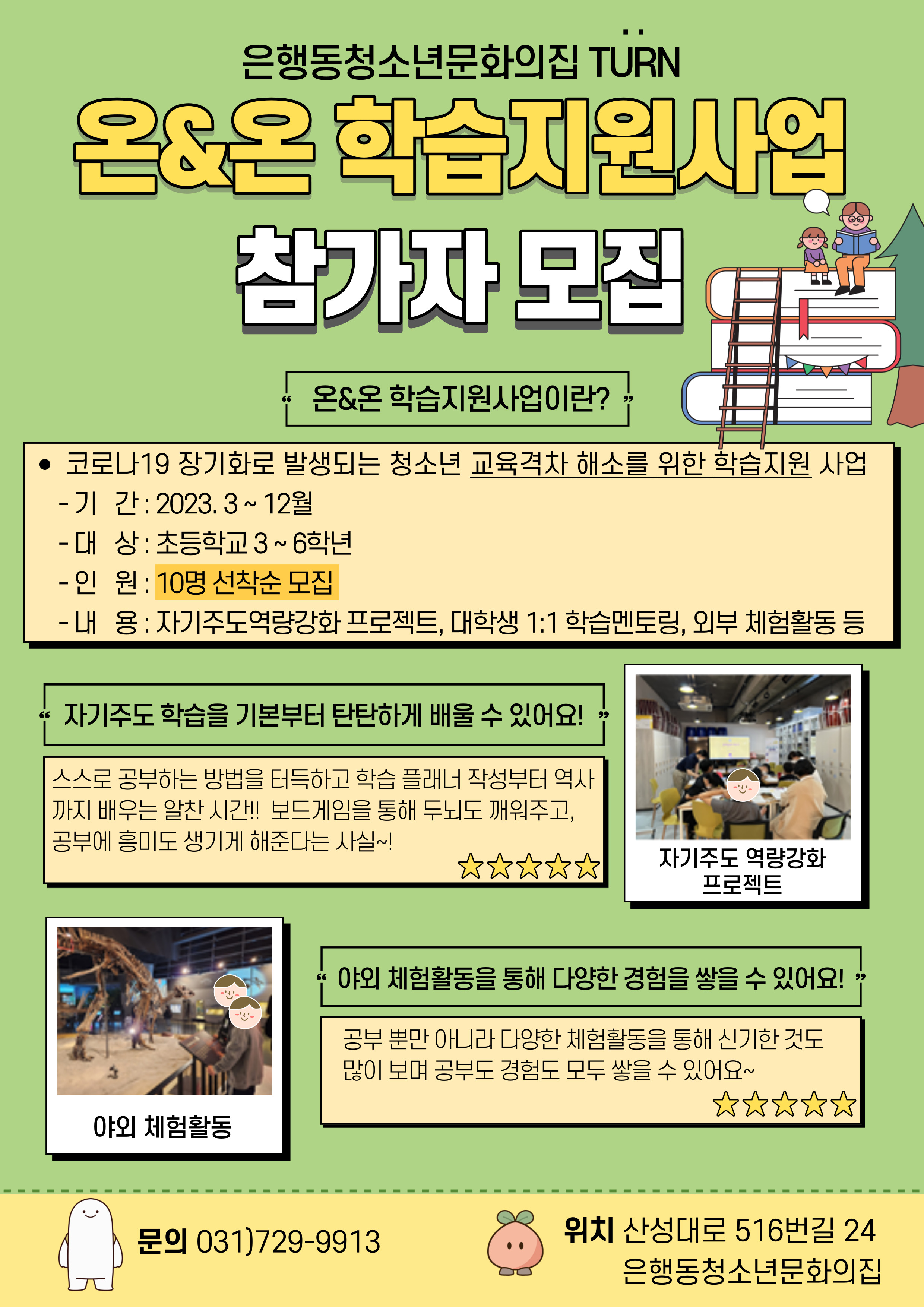 2023년 은행동청소년문화의집 온&온 학습지원사업 참가자 모집 안내