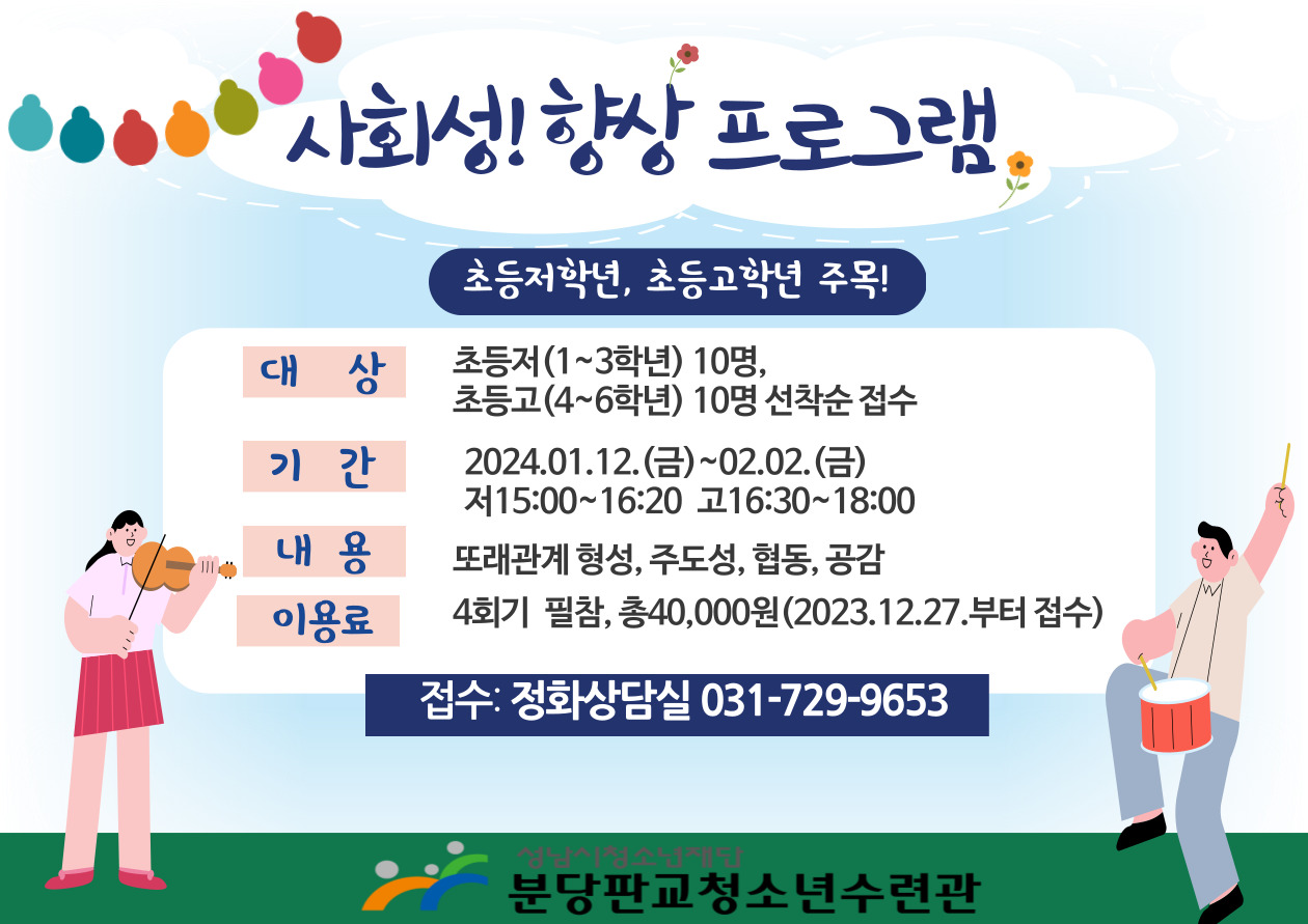 분당판교청소년수련관 [사회성향상 프로그램] 접수 안내