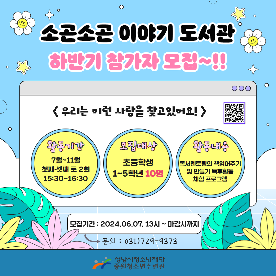 - 활동기간: 7~11월 첫째 · 셋째 (토) 2회 15:30~16:30