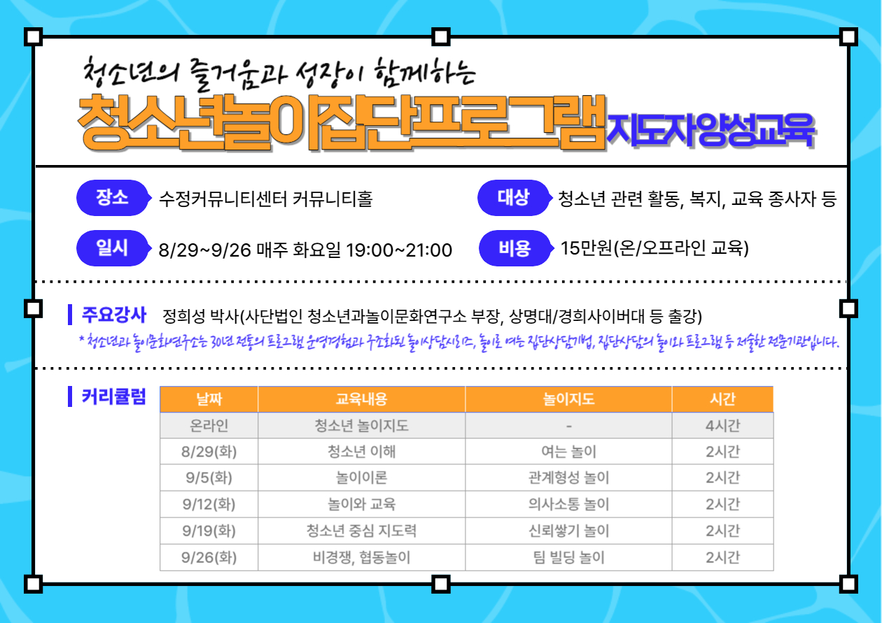 ■ 청소년놀이집단 지도자교육 프로그램 안내