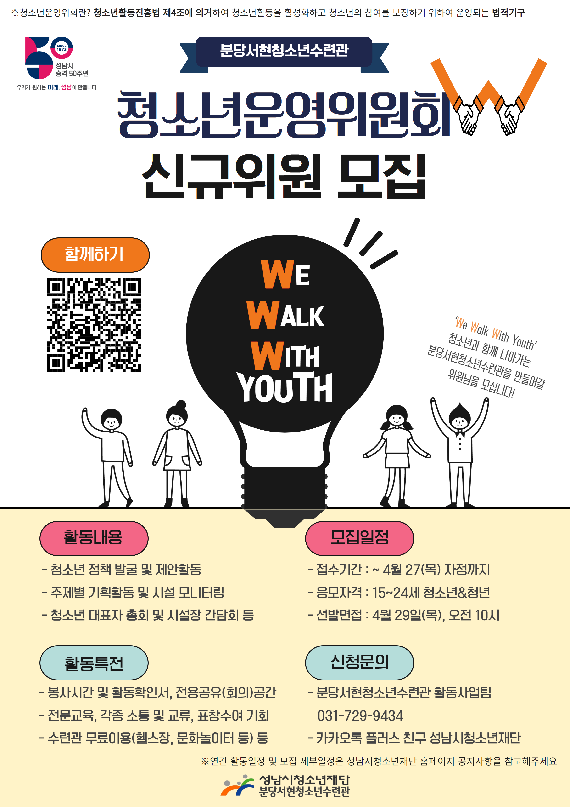 - 4월 29일(토), 오전 10시, 분당서현청소년수련관 2층 청소년운영위원회실(참여터)