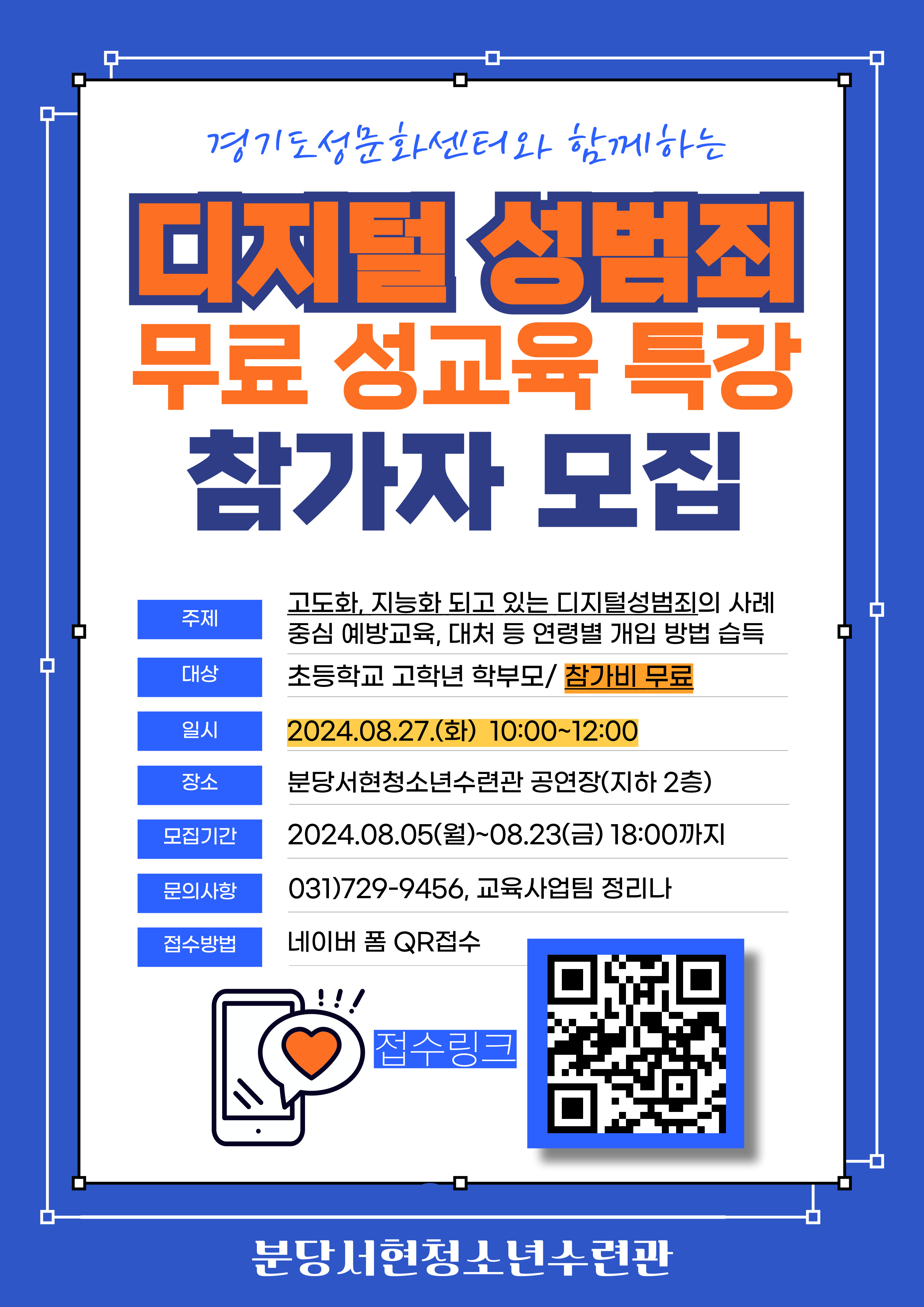 [무료 디지털성범죄 성교육 특강 참가자 모집]