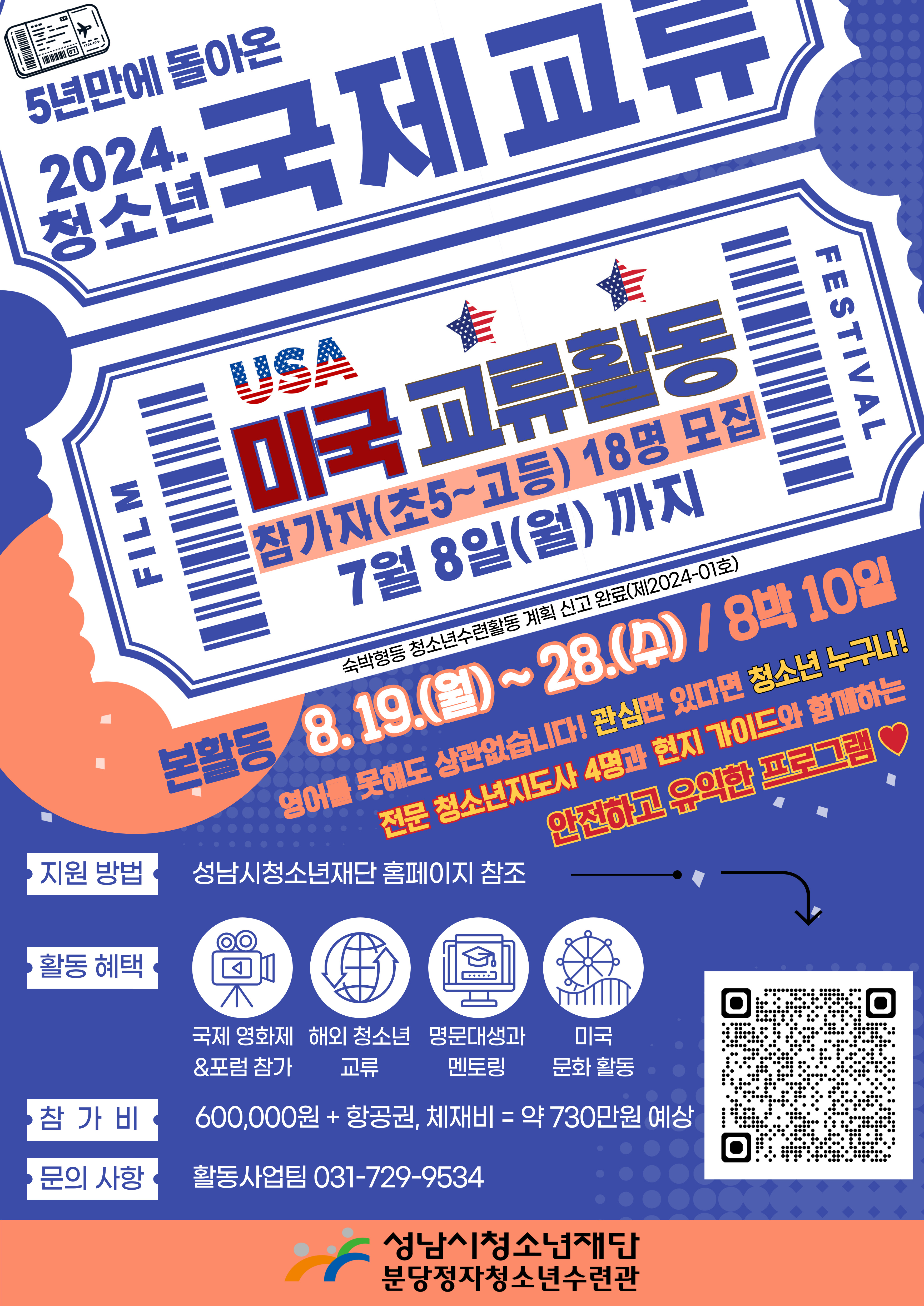 국제적 행사 참여 및 해외 청소년과의 교류로 문화적 다양성과 개방성을 경험하고 글로벌 인재로의 성장을 지원하고자 「2024년 청소년 국제교류」 참가자를 다음과 같이 공개 모집합니다.