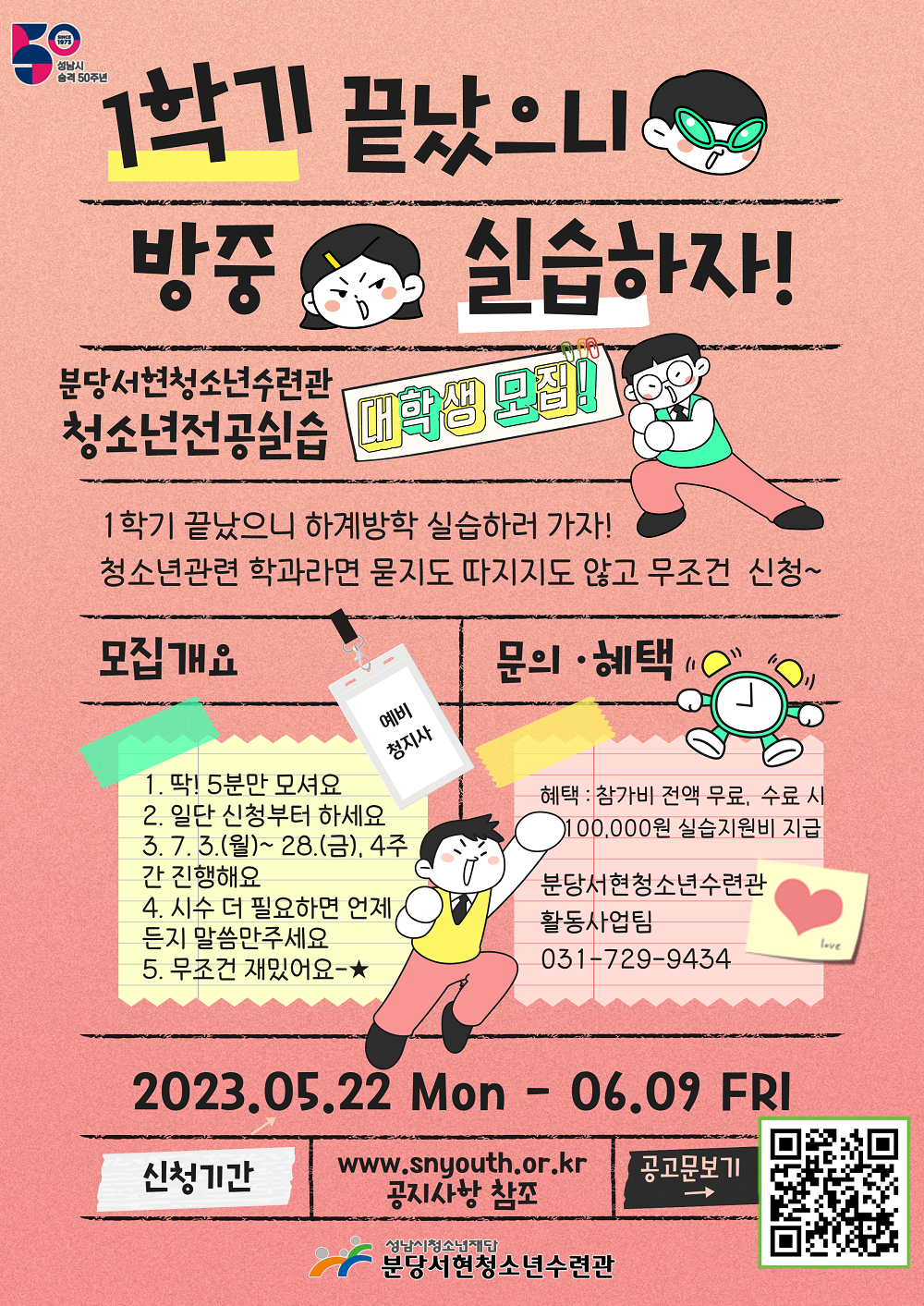하계방학 청소년관련 학과 『청소년전공실습』 참가자 모집