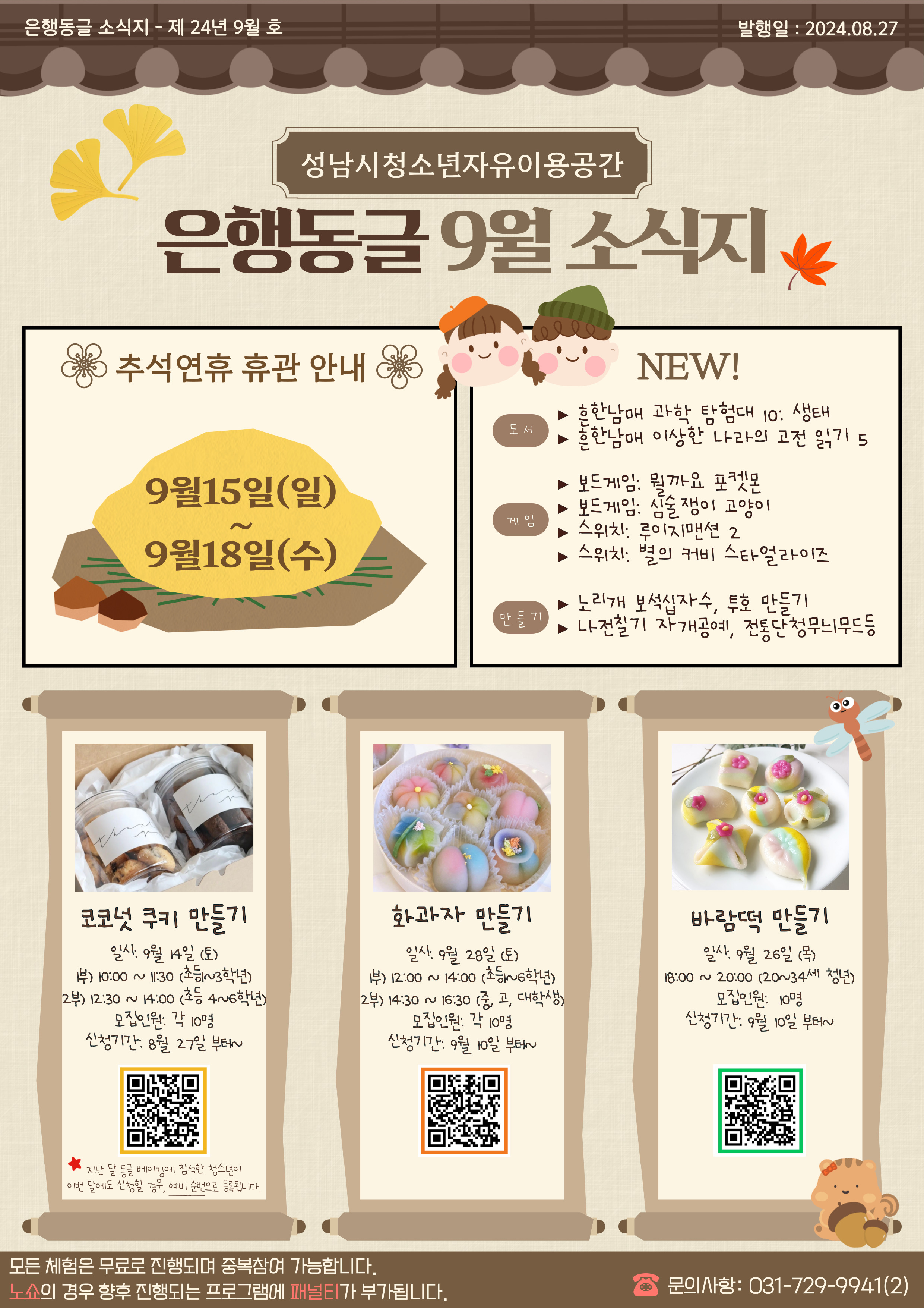 안녕하세요 은행동글입니다 9월의 소식지 전달드립니다
