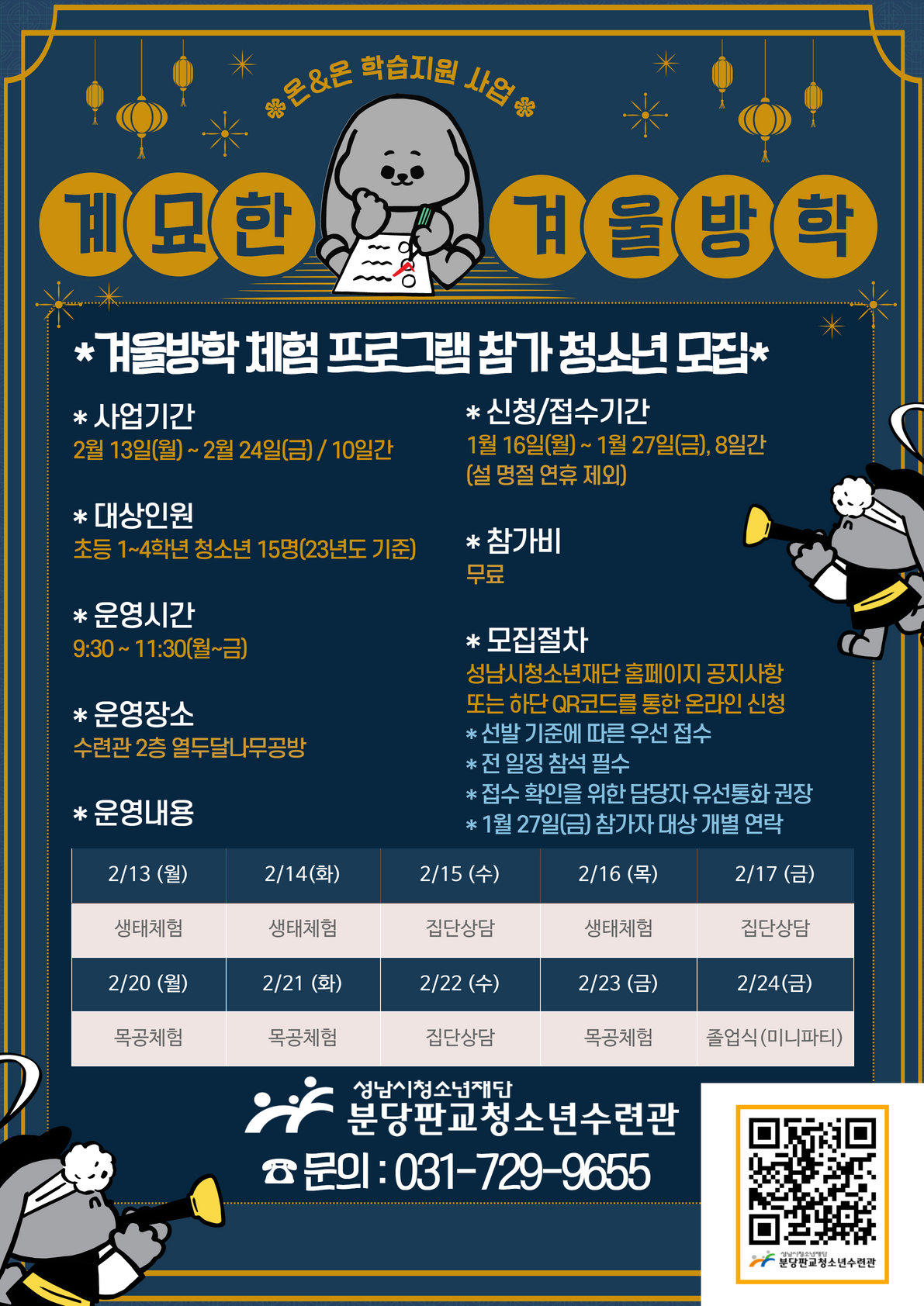 모집대상: 초등 1학년 ~ 4학년 청소년 15명