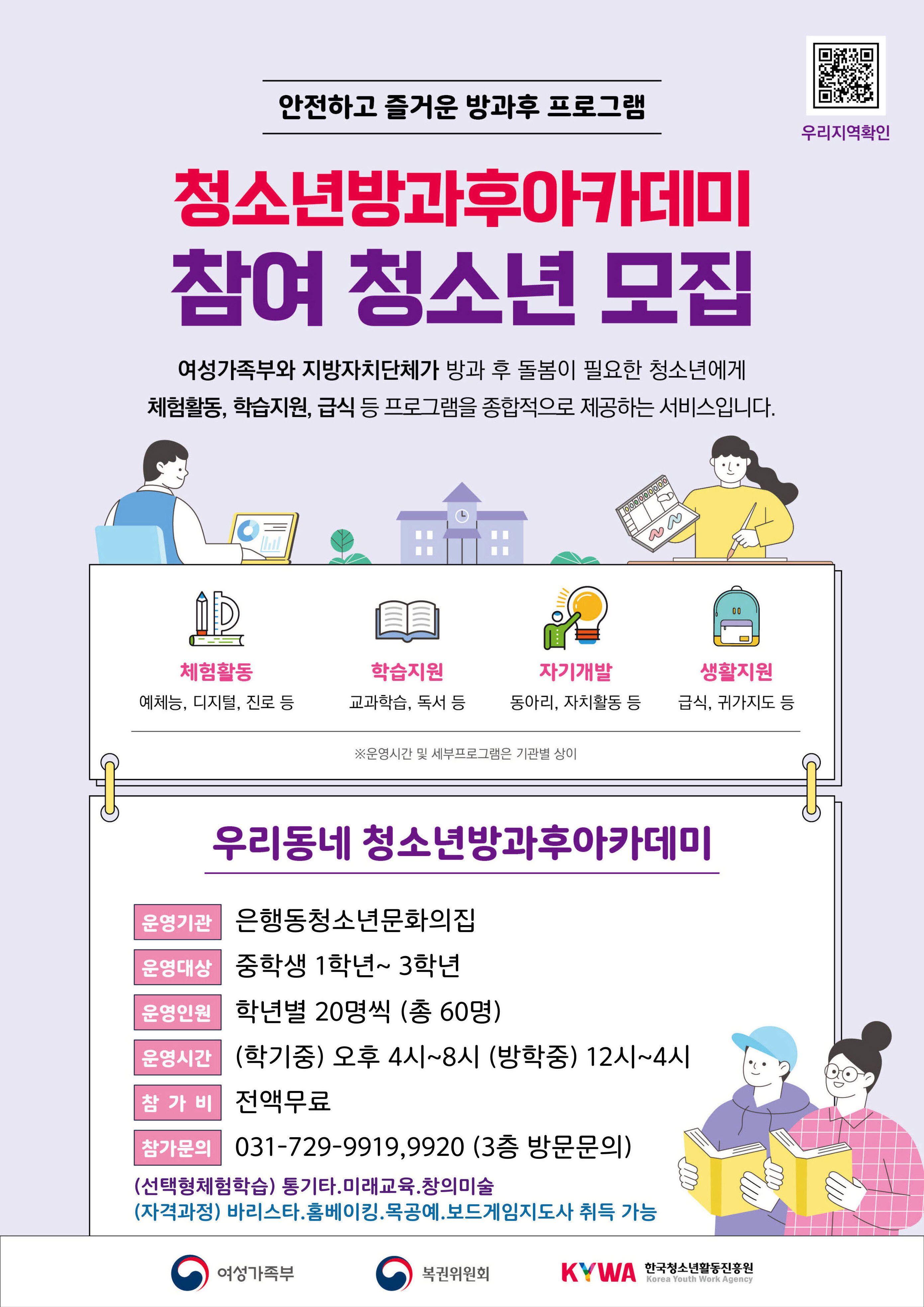 2025년 은행동청소년문화의집 방과후아카데미 참여 청소년을 모집합니다!