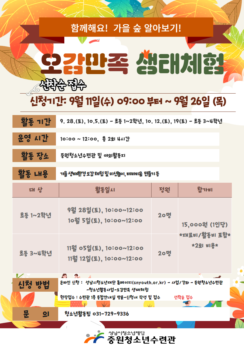성남시청소년재단 홈페이지사업강좌접수(센터)중원청소년수련관