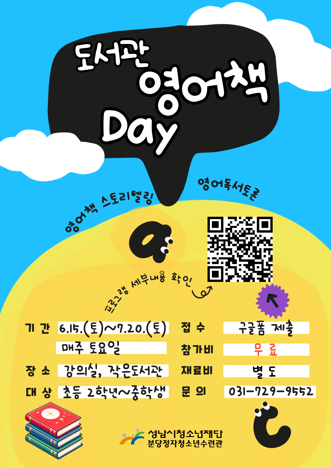 분당정자청소년수련관에서는 청소년 대상 영어책 Day 프로그램 참가자를 모집합니다.
