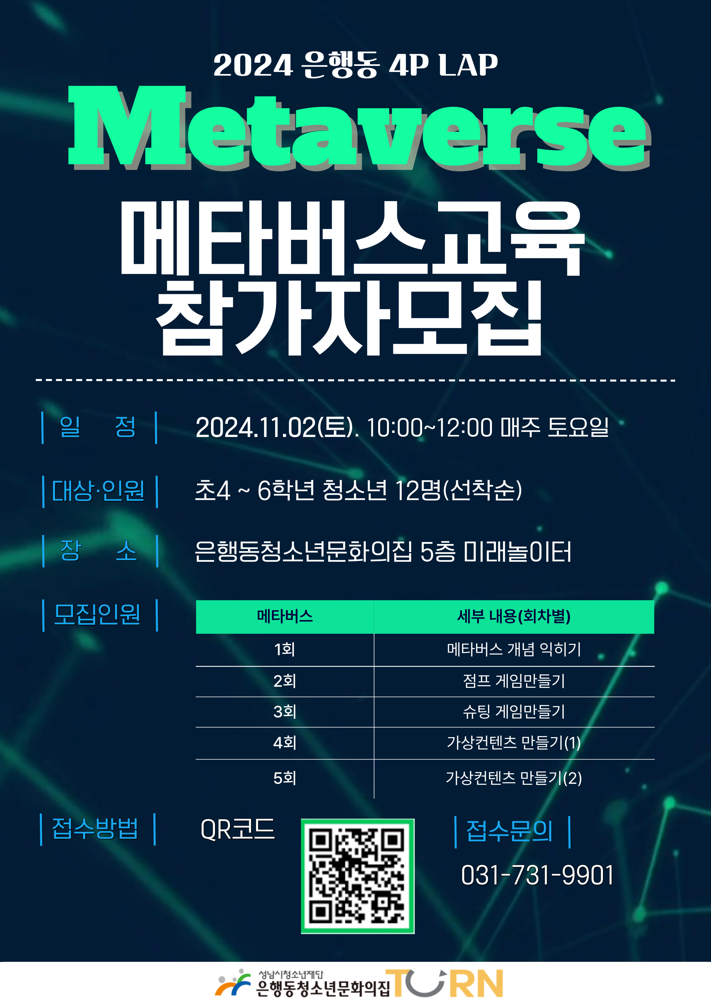 1) 메타버스 교육: 2024. 11. 02.(토) 10:00 ~ 12:00 > 매주 토요일