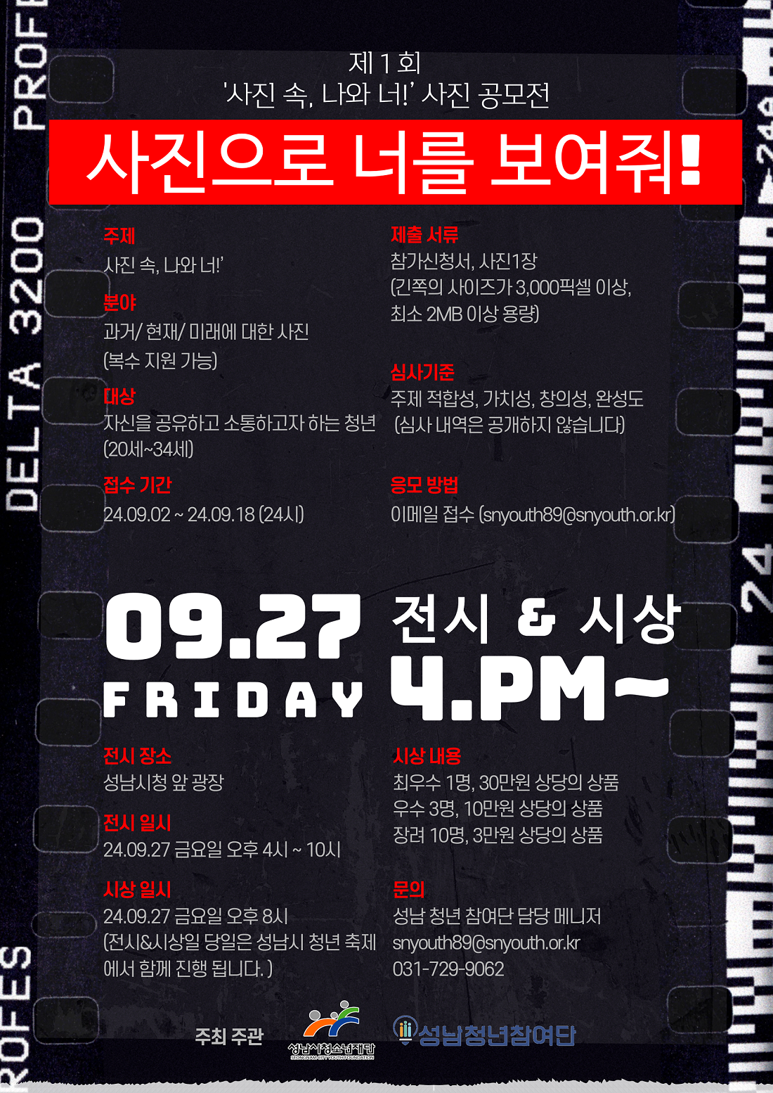 가. 전시일시: 9월 27일 오후 4시~10시(성남청년축제와 함께 진행됩니다.)