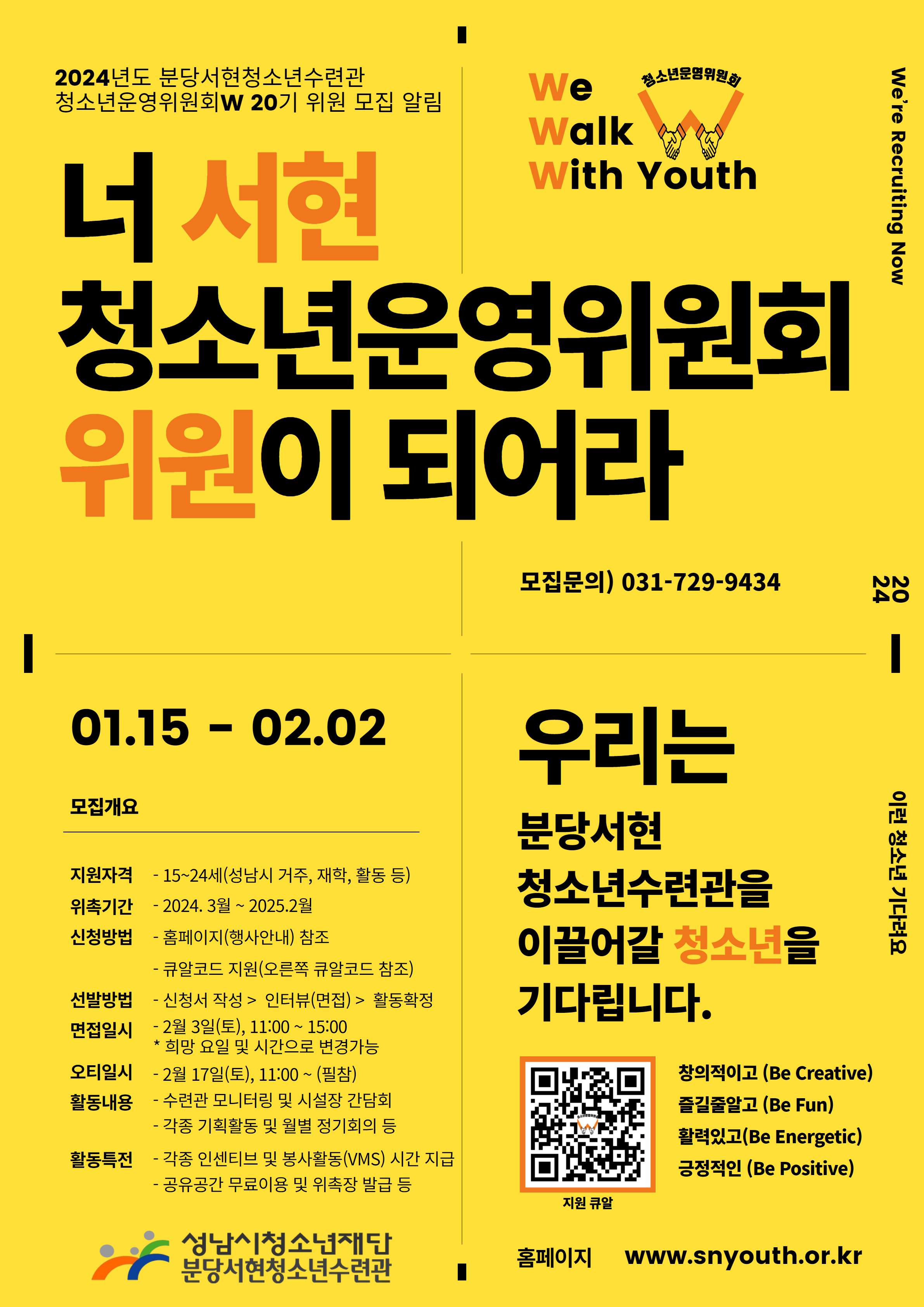 - 2월 3일(토), 시간협의 가능, 분당서현청소년수련관 2층 청소년운영위원회실(참여터)